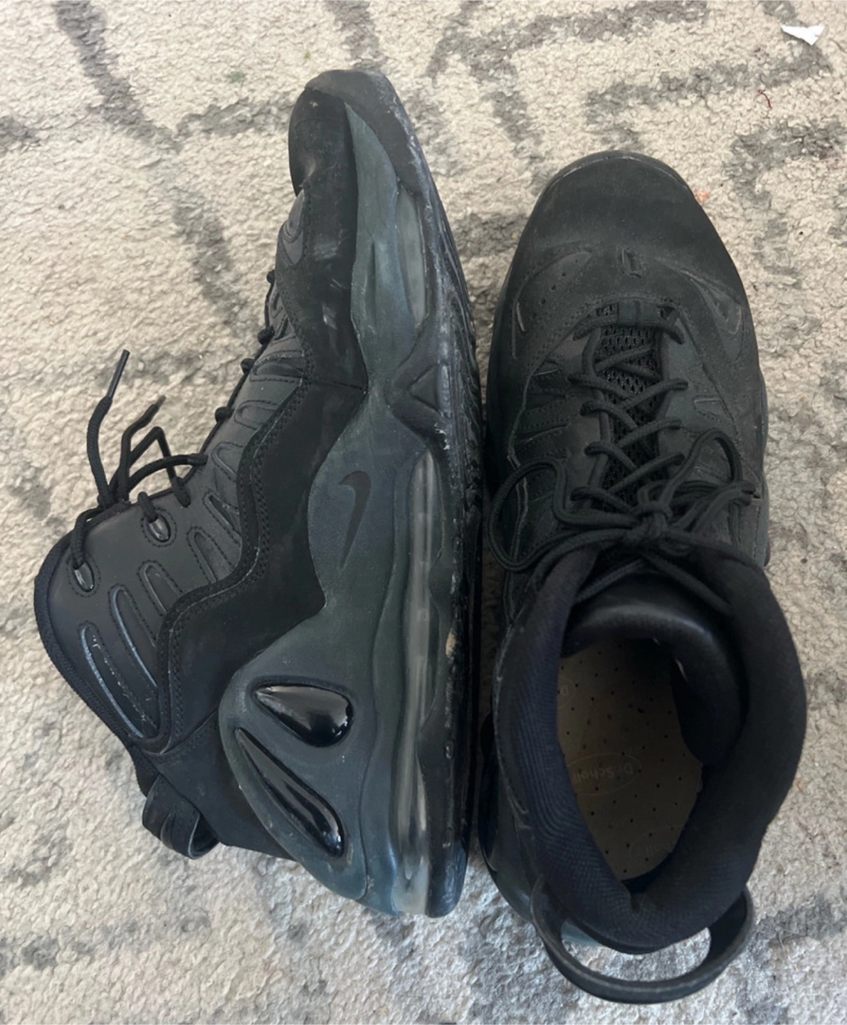 Selling a pair of Nike Air Total Max Uptempo in black, size US 12. These shoes are in used condition. The manufacturing date is 2018 March 21.