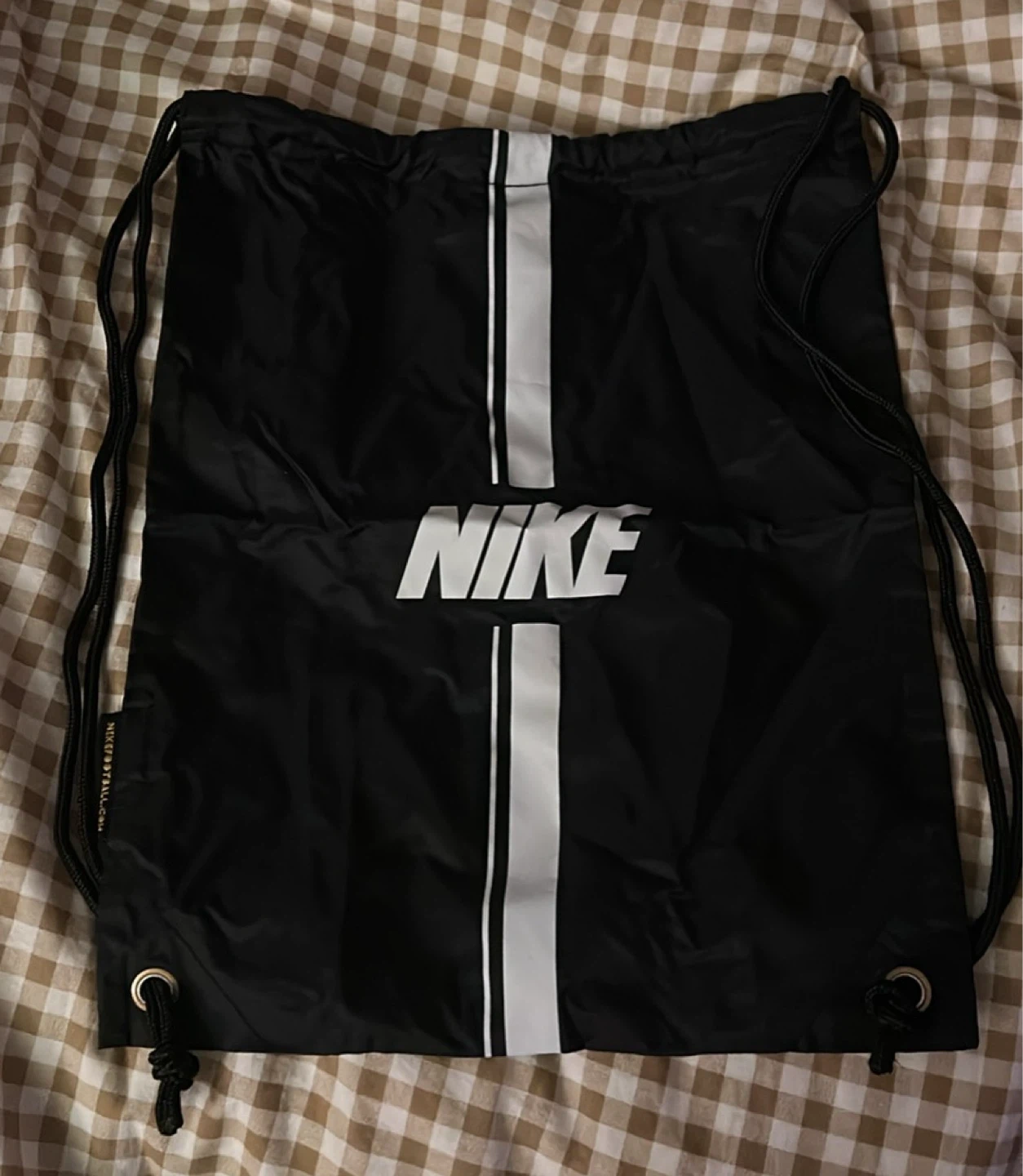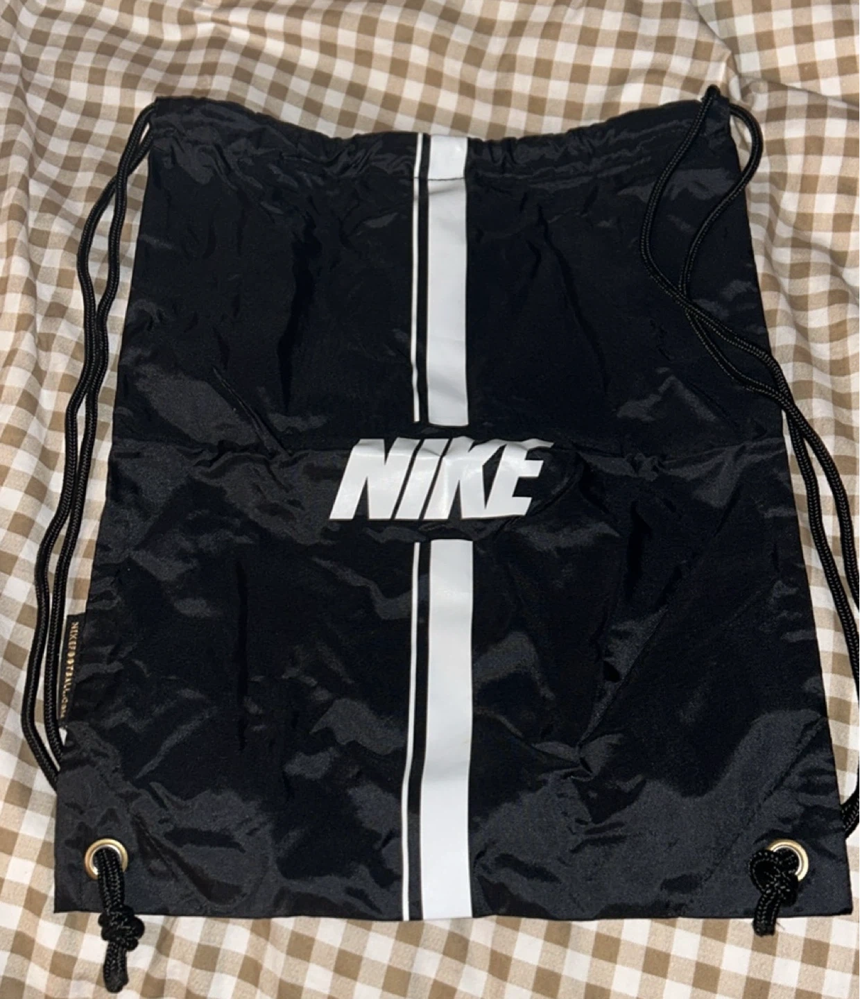 Selling a black Nike drawstring bag. It features the Nike logo in white, along with two white stripes. Perfect for carrying your gym clothes or everyday essentials!