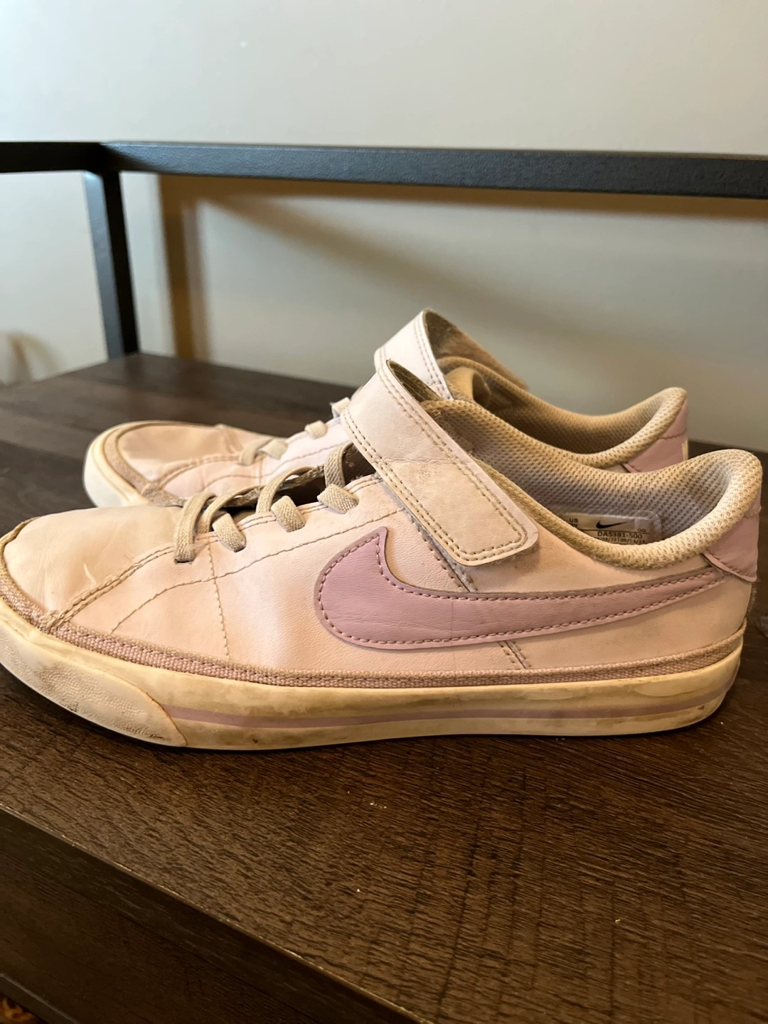 Selling a pair of Nike Court shoes in youth size 3.5 They have a velcro strap and laces. Perfect for everyday wear!