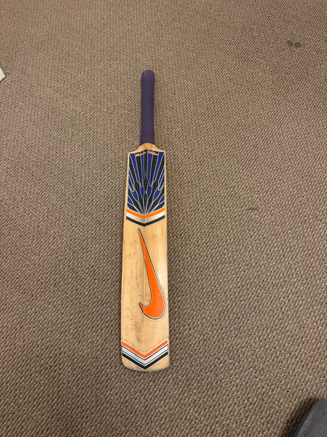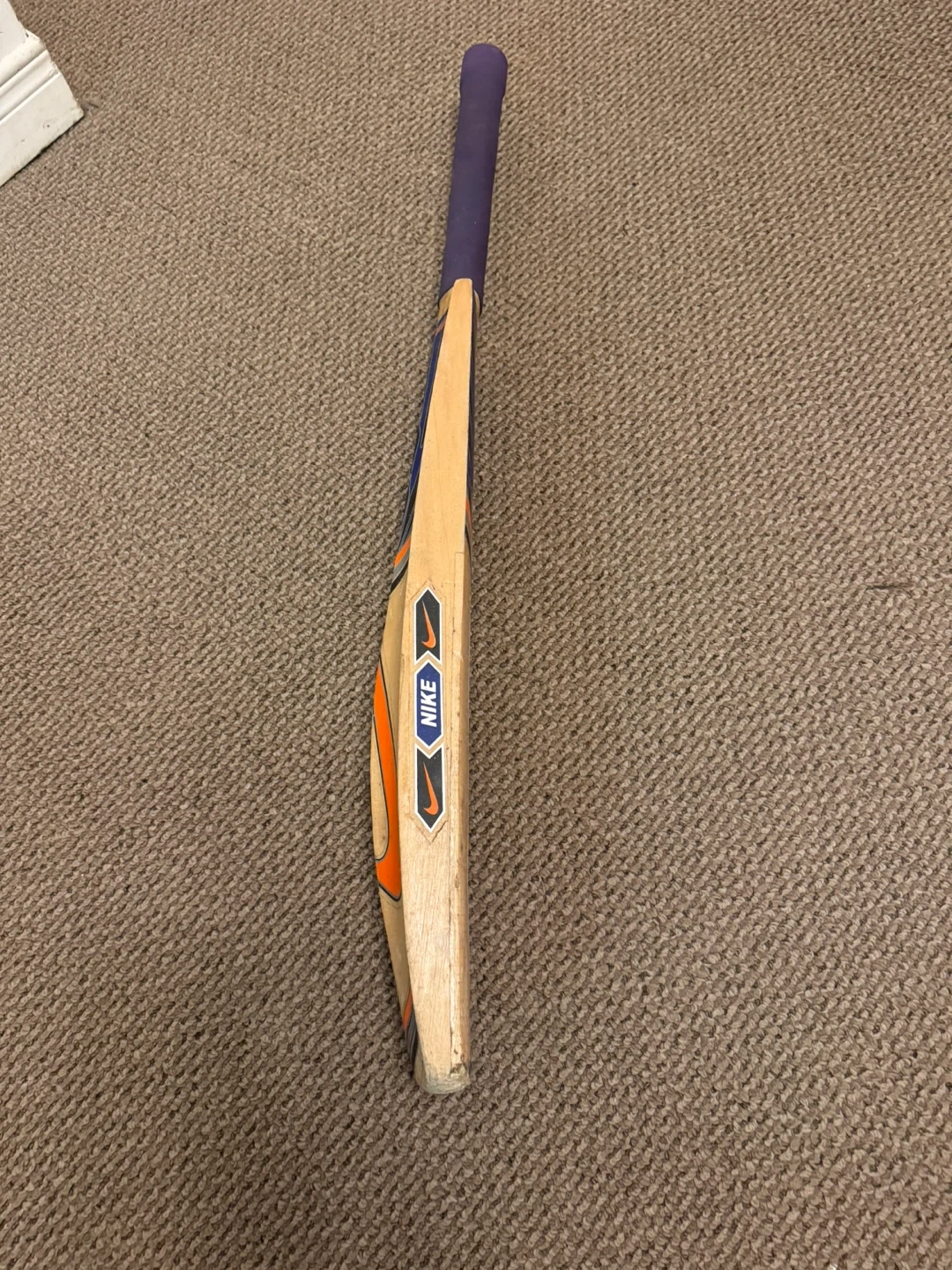 Selling a used Nike cricket bat. It shows signs of wear, but is still in usable condition. Great for casual games or practice! Size 5