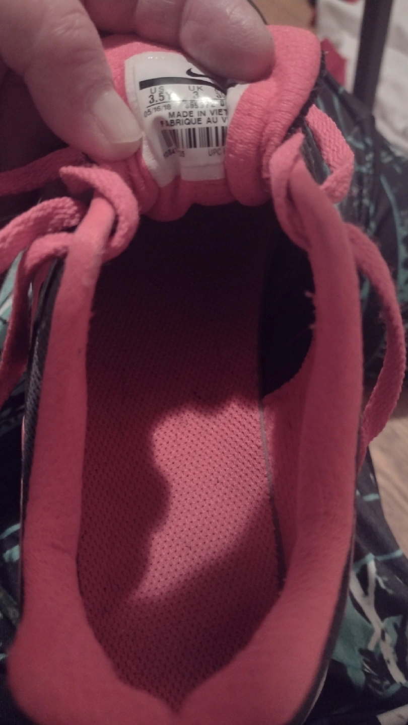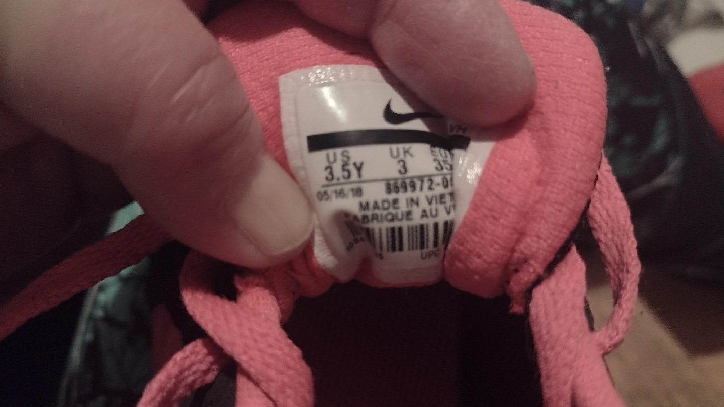 Selling a pair of Nike Downshifter 7 youth running shoes in size 3.5 US. They're black with pink accents and have a classic running shoe design. Great for everyday wear or sports!