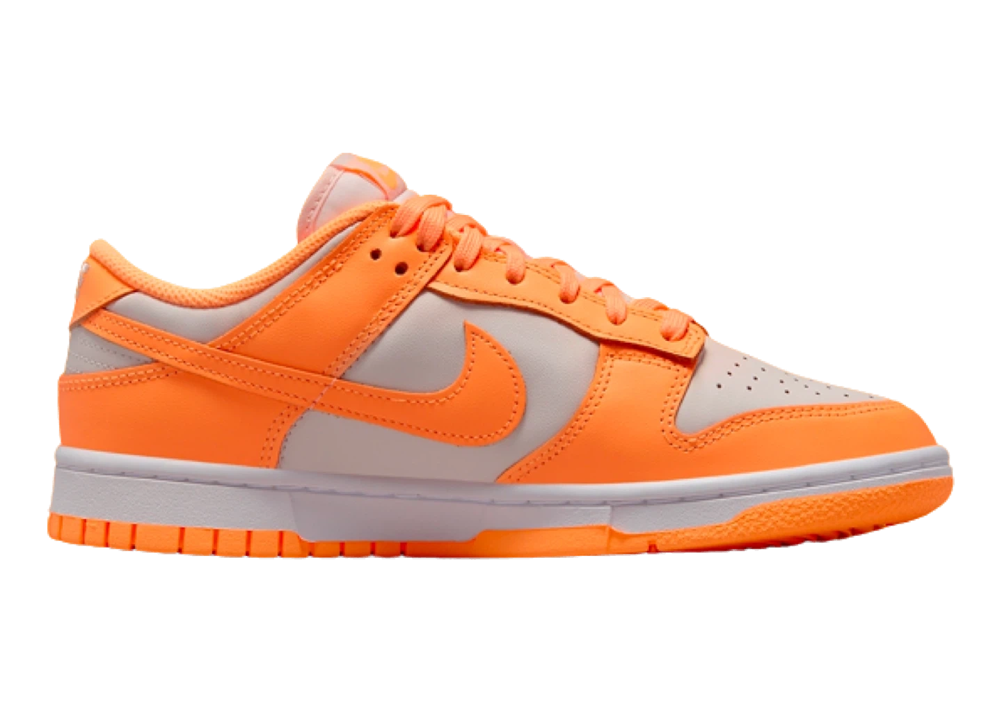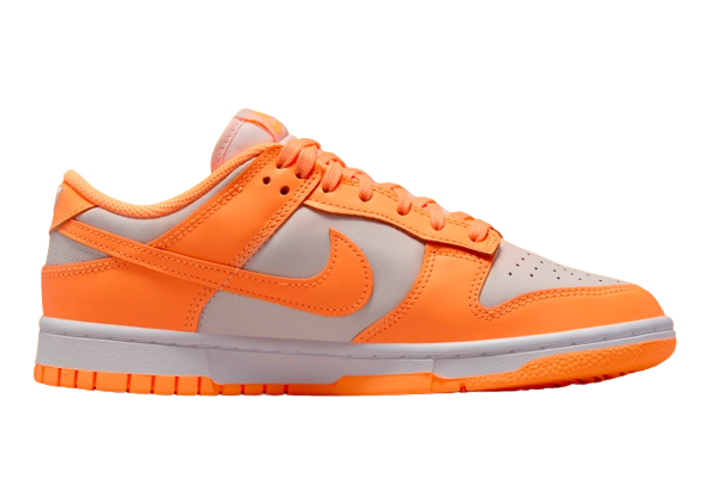 Voici une paire de Nike Dunk Low dans les tons orange et beige. Elles sont super stylées et parfaites pour ajouter une touche de couleur à votre garde-robe! Elles sont en excellente condition