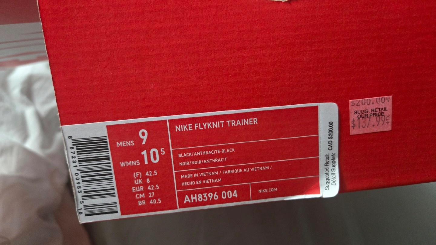 Selling a pair of Nike Flyknit Trainers in black and anthracite. They're in great shape and come in the original box! The size is Men's 9