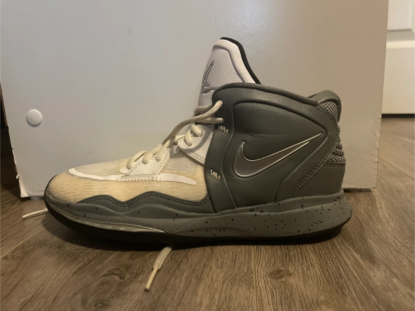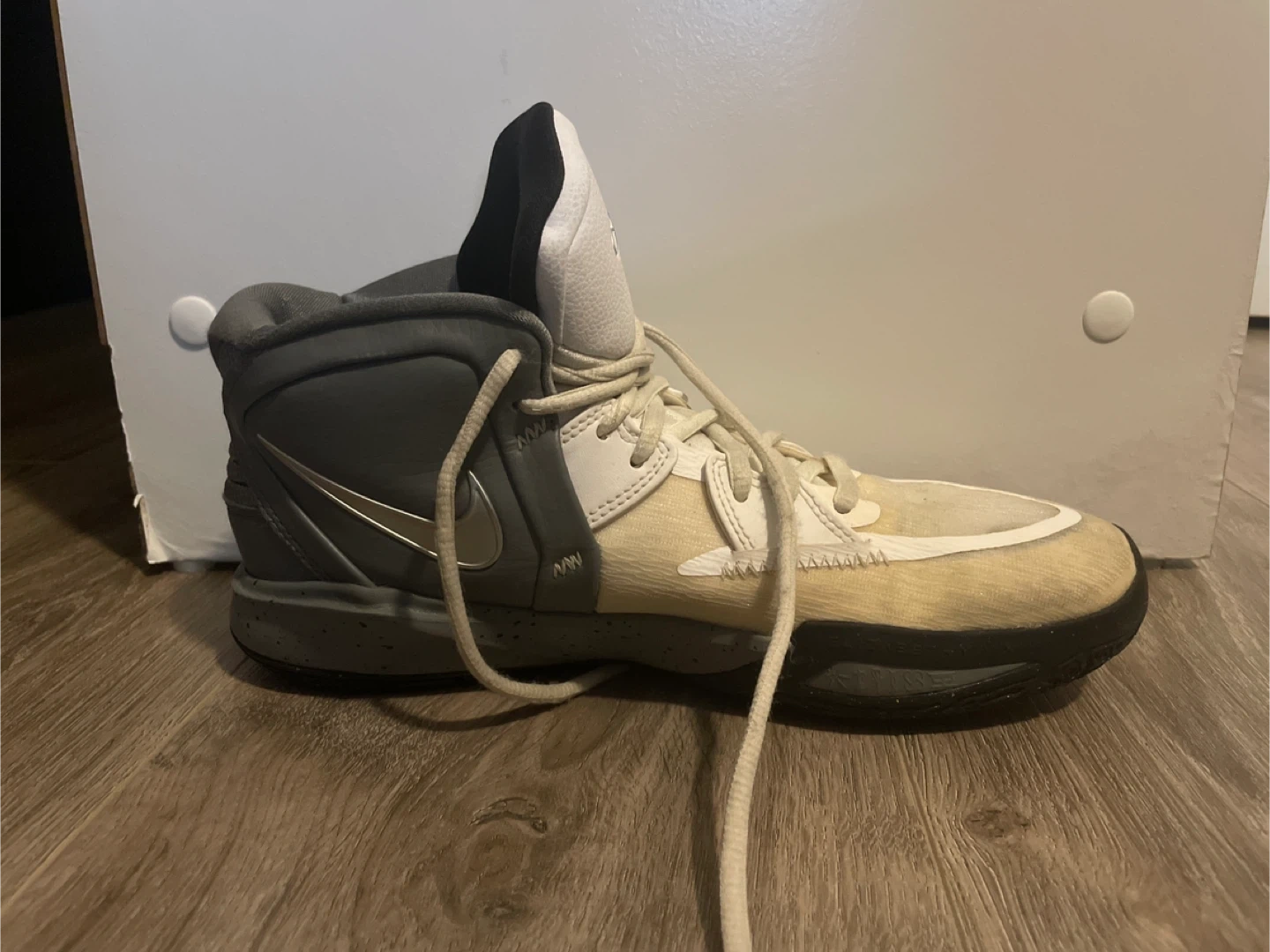 Selling a pair of Nike Kyrie Flytrap 5 basketball shoes. These are in used condition, as you can see in the photos. Slight discolouration as you can see in the photos. Tractions still good. Bought these second hand but never worn them. Shoot me your best offer!