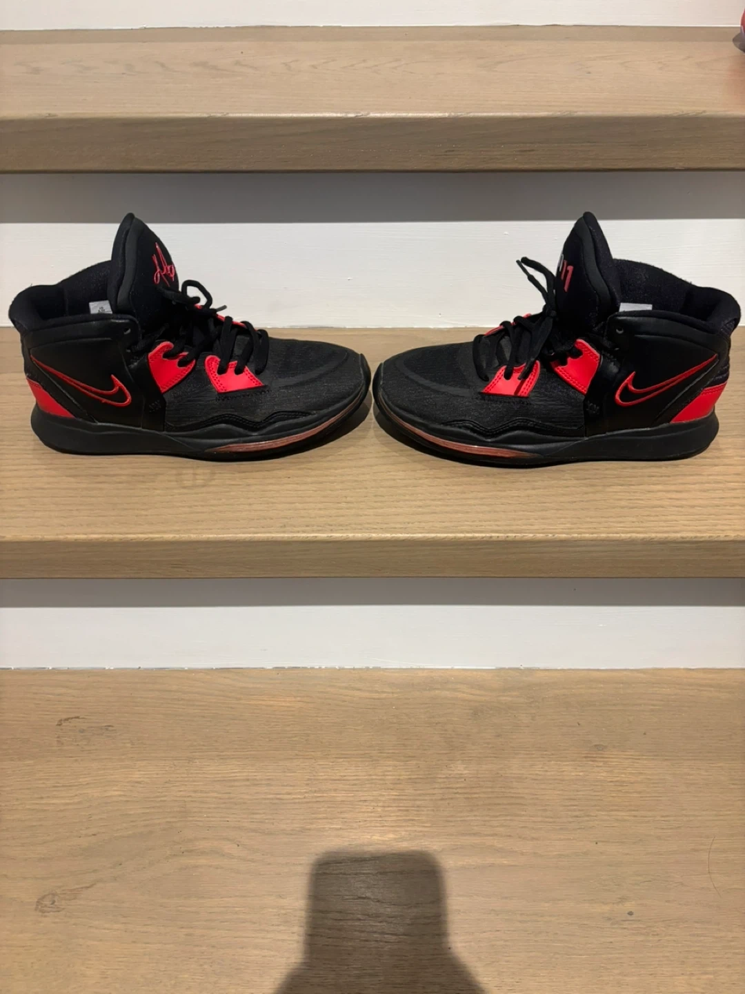 Selling a pair of Nike Kyrie Flytrap 6 basketball shoes in black with red accents. Feature 1111 logo and Kyrie signature. They're in great shape and ready for the court! Size 6.5Y