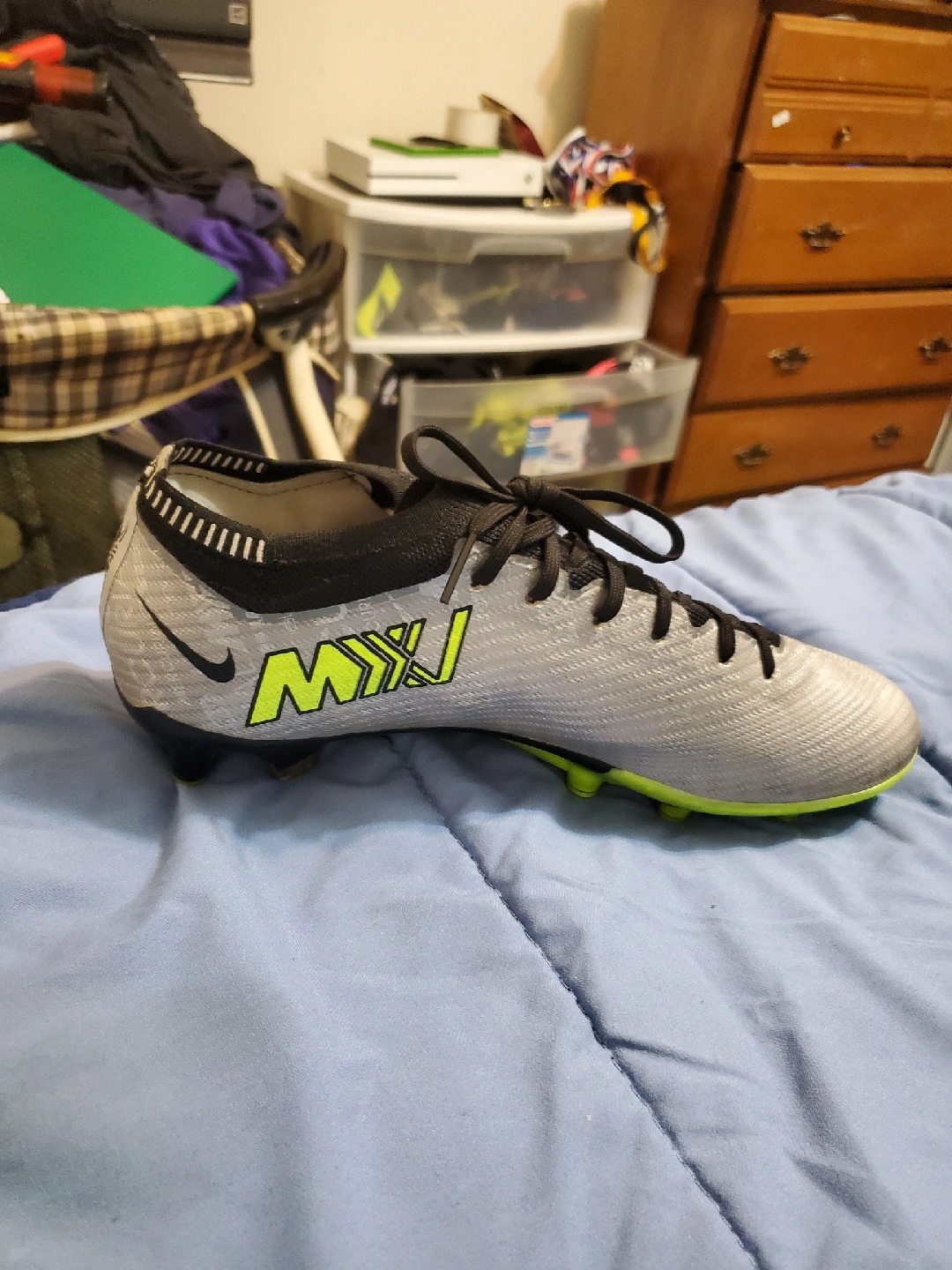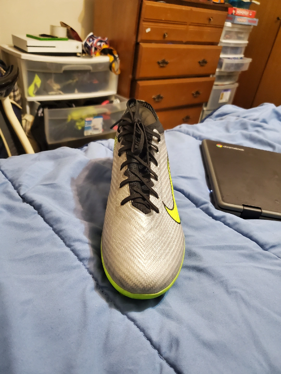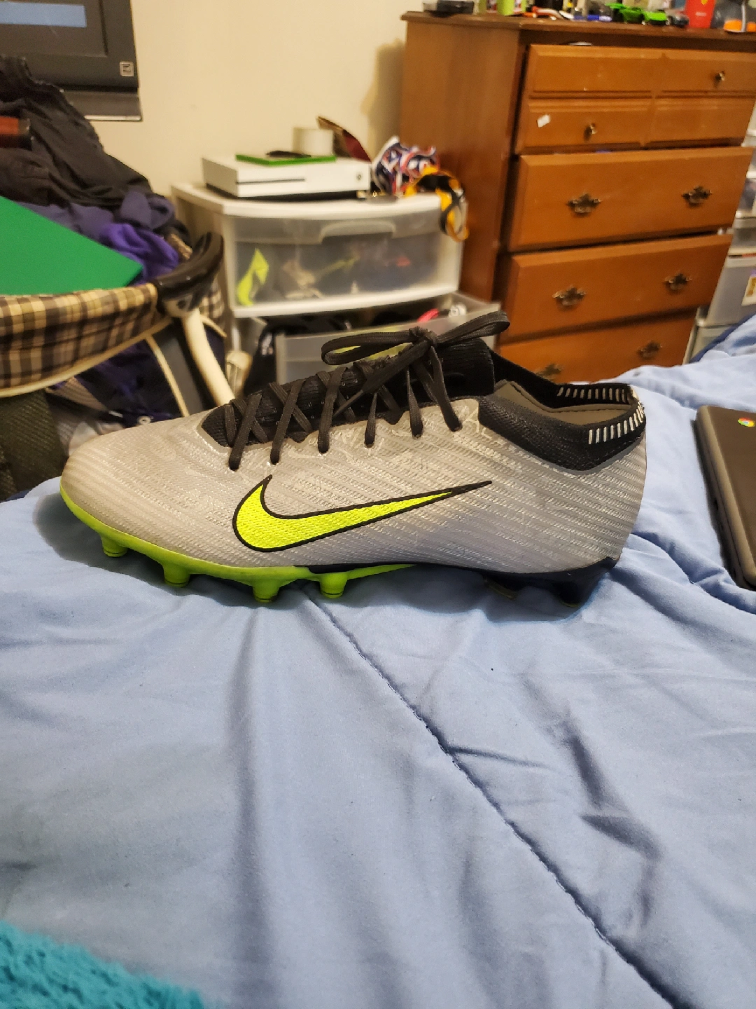 Selling a pair of Nike Mercurial Vapor 13 soccer cleats. They are a silver/grey colour with neon green accents. The cleats are in good condition and ready for the field! Size 9.