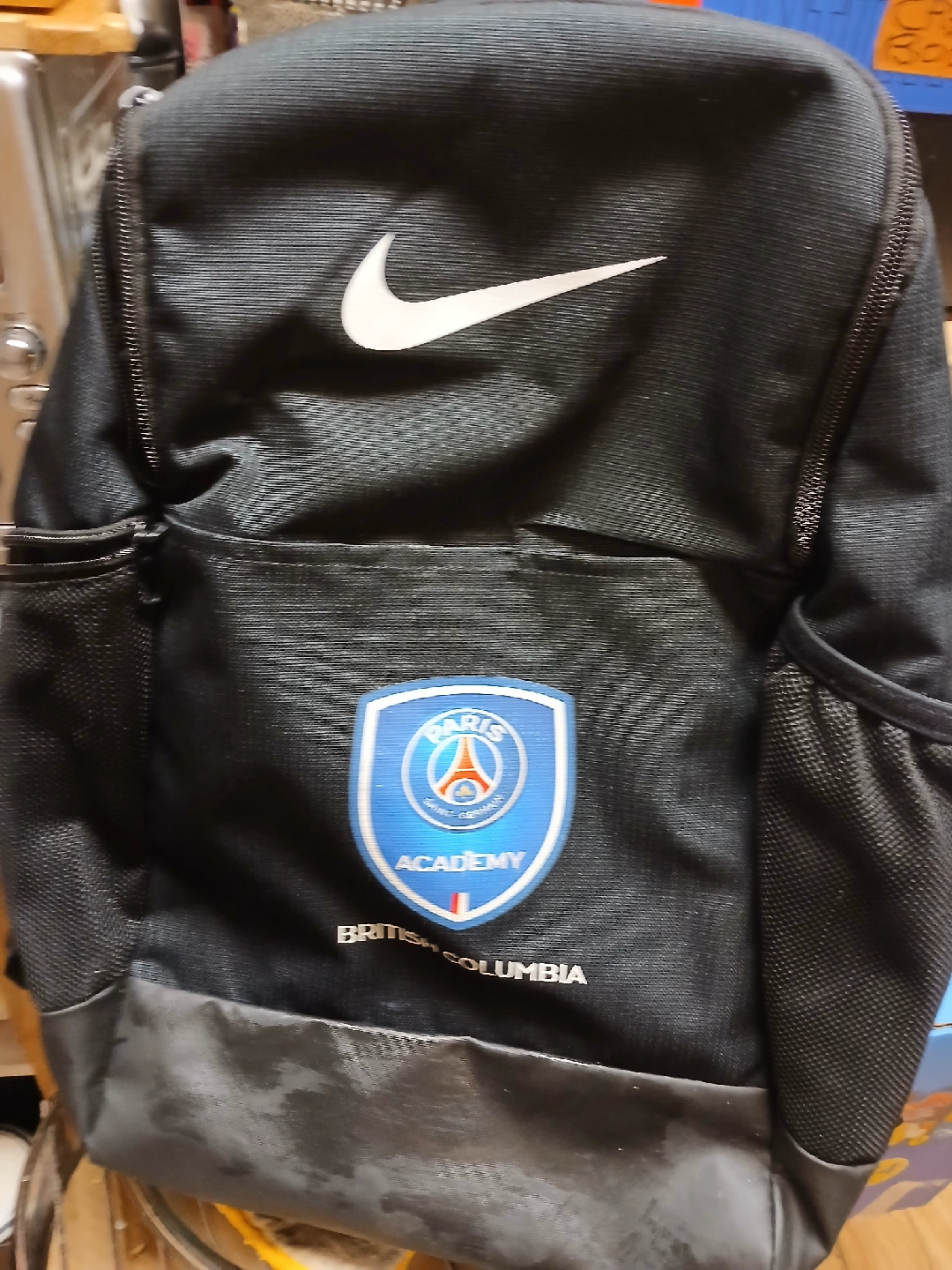 Selling a Nike Paris Saint-Germain Academy backpack. It features the Paris Saint-Germain Academy logo and a Nike swoosh. It's black and in great shape!