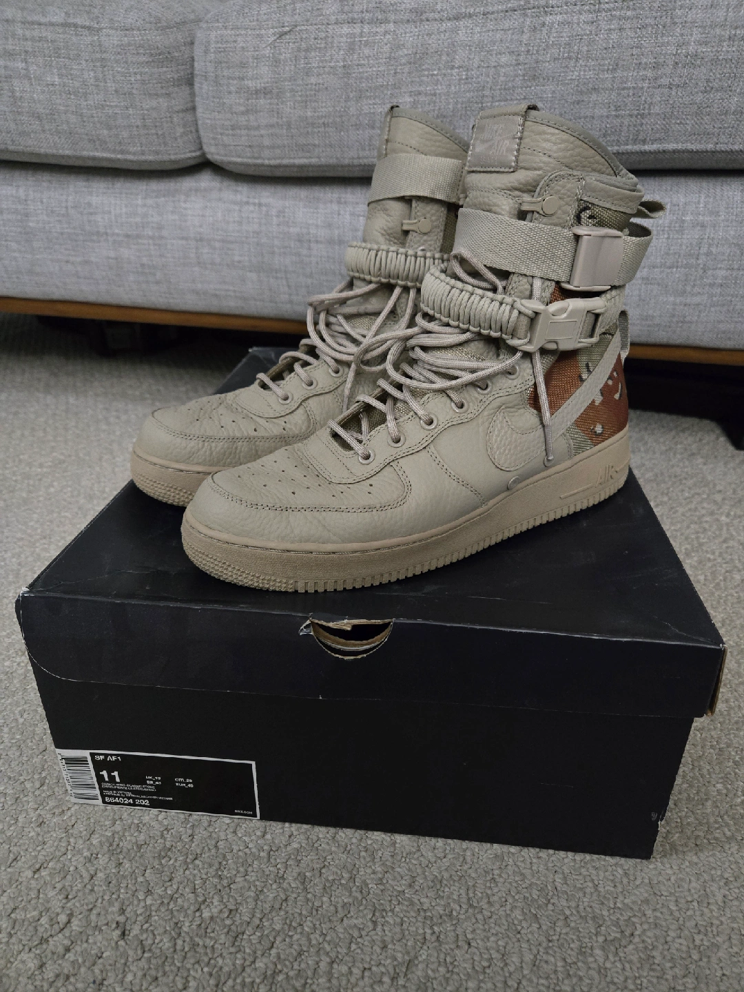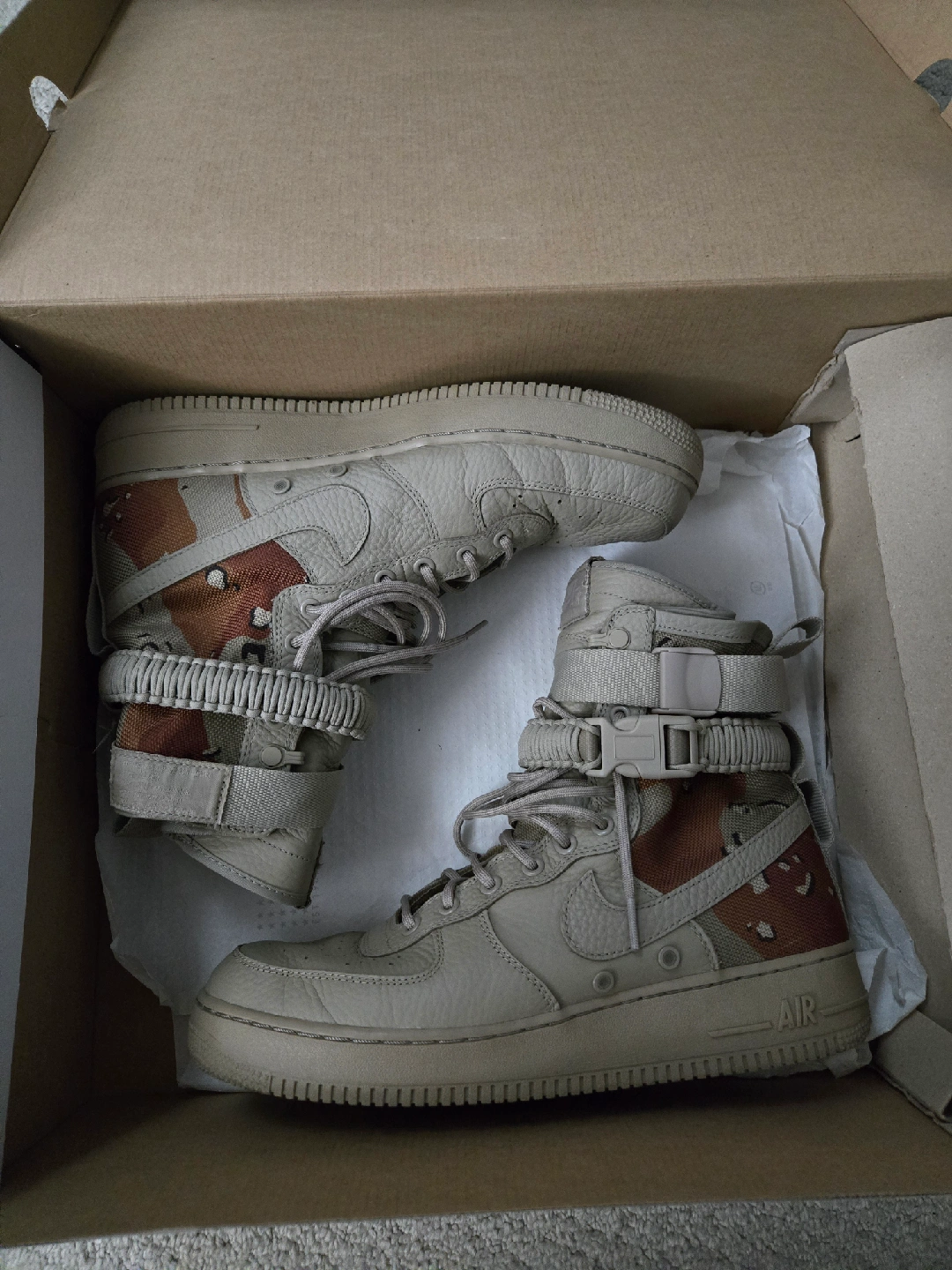 Selling a pair of Nike SF Air Force 1 High in the Desert Camo colourway, size 11 US. These come with the original box. They are in great condition!