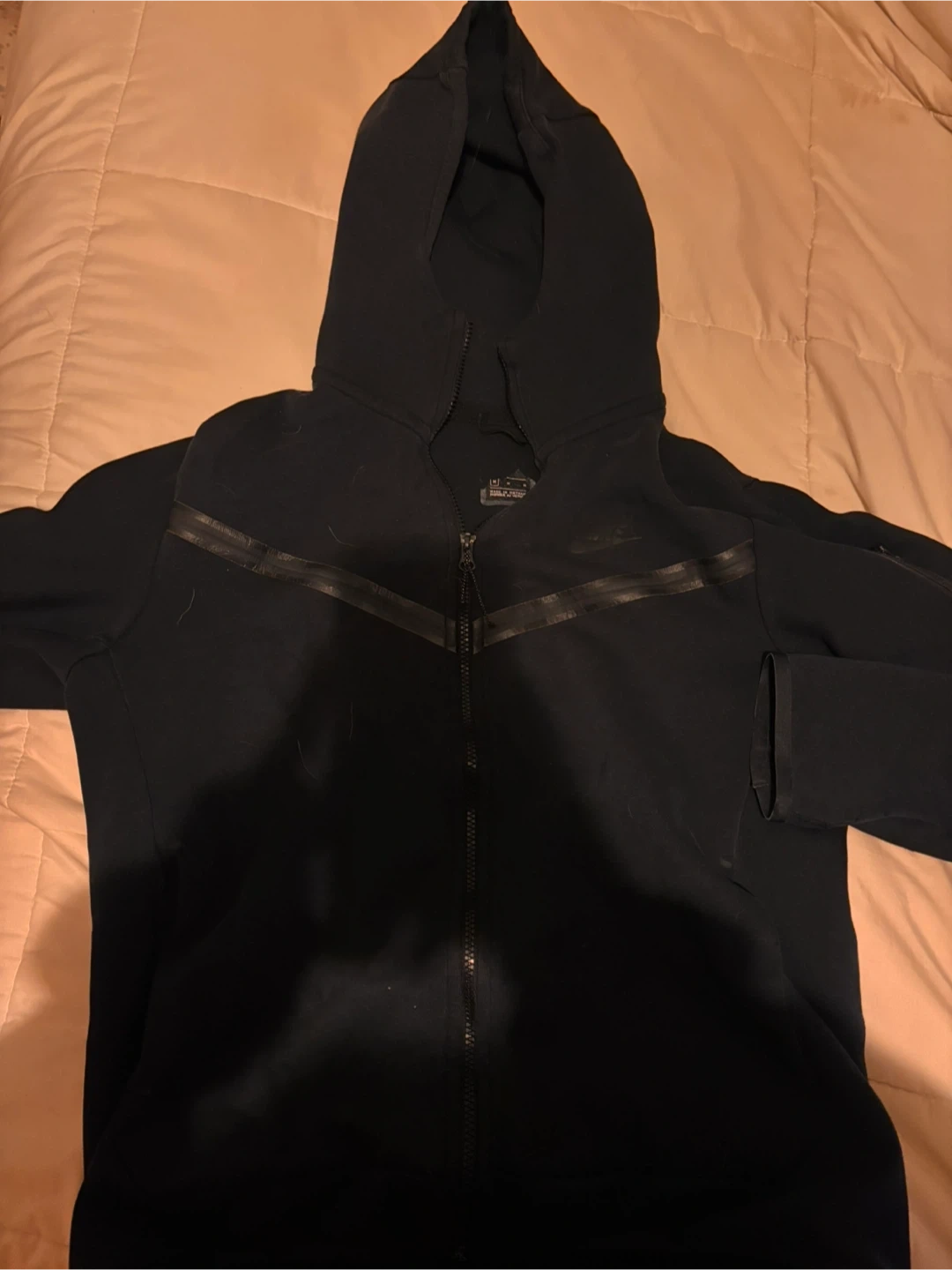 Selling a black Nike Tech Fleece hoodie. It's in ok condition and super comfy for everyday wear! Feel free to ask any questions!