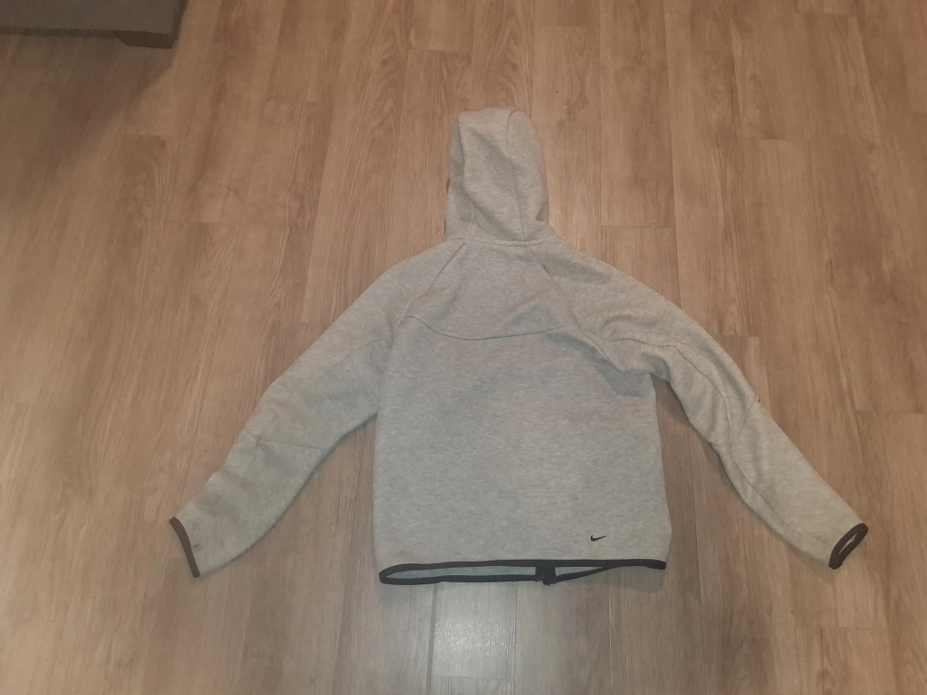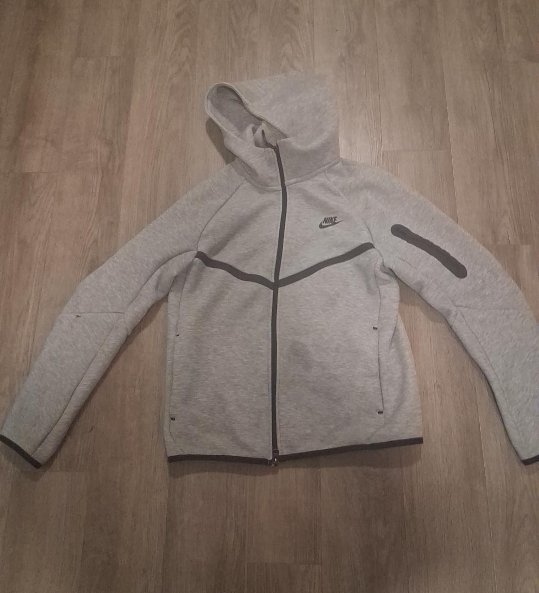 Selling a grey Nike Tech Fleece hoodie. It's in great condition and ready for a new owner! Perfect for layering or wearing on its own. The material is soft and comfortable, and the design is stylish and modern