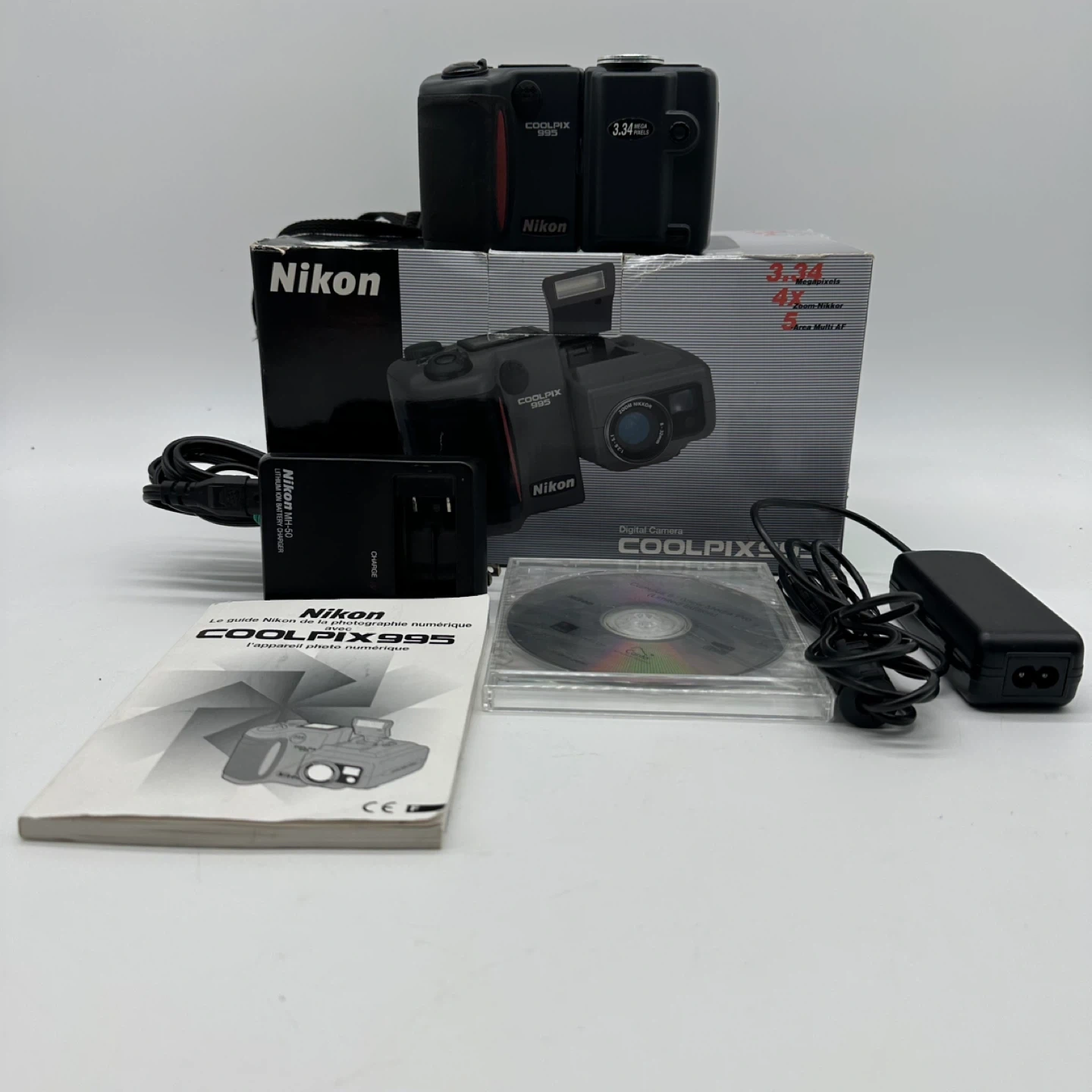 Vintage Nikon Coolpix 995 Digital Camera (3.34 Megapixels) in great condition. Comes with: • Original box • Nikon MH-50 charger and AC adapter • Instruction manual (French edition) • Software CD (Cumulus 5 / iView Media Pro – Limited Edition) • Neck strap ✅ Tested and works properly ⚠️ Please note: The small side door (shown in the photo) does not close completely. It still stays in place and does not affect the camera’s function. Perfect for collectors or anyone who loves vintage digital photography. Pickup in GTA or shipping available for an extra fee. 1416 ca