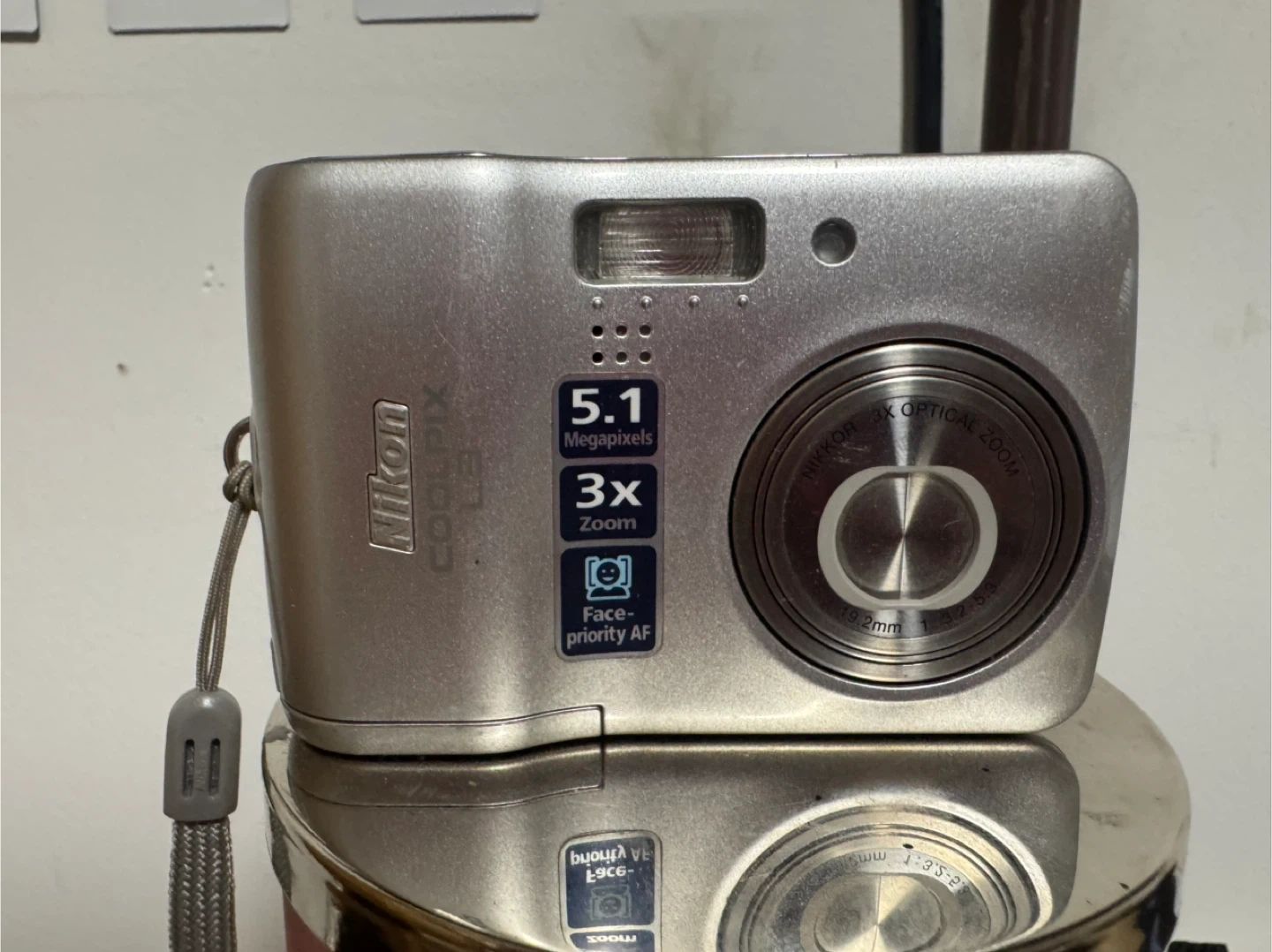 Selling a used Nikon COOLPIX L3 digital camera in silver. It features a 5.1 Megapixel sensor and 3x optical zoom. Great for beginners or those looking for a simple point-and-shoot camera!