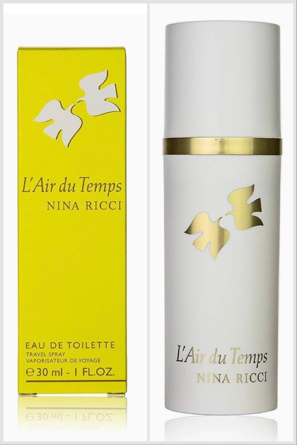 Nina Ricci l'air du temps (30 ml) Top notes are Spices, Neroli, Peach, Bergamot and Brazilian Rosewood; middle notes are Carnation, Lily, Iris, Ylang-Ylang, May Rose and Orchid; base notes are Moss, Musk, Sandalwood, Ambergris, Vetiver, Cedar and Benzoin.