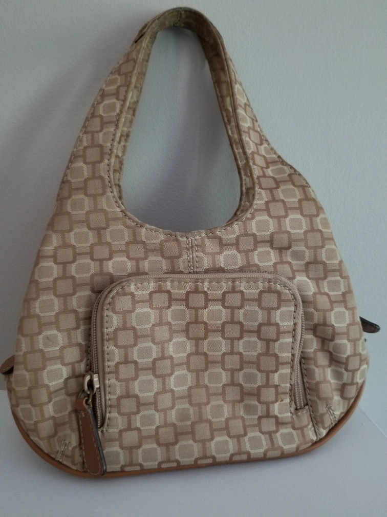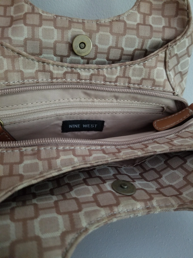 Selling a cute Nine West handbag! It's in great shape and perfect for everyday use. It features a unique pattern and a convenient zippered pocket on the front.
