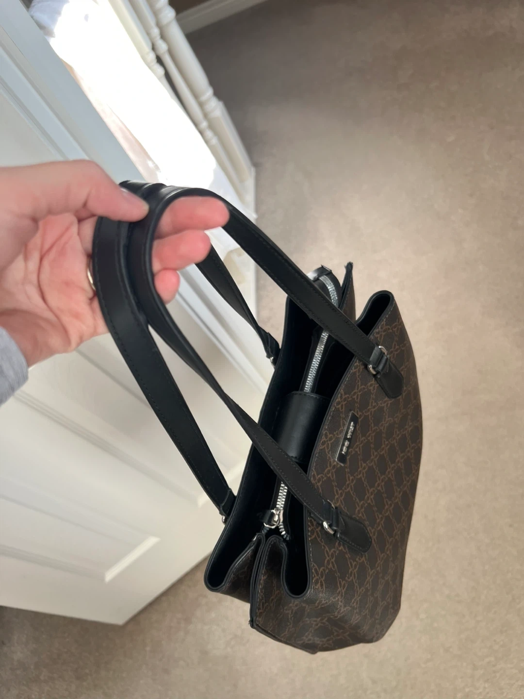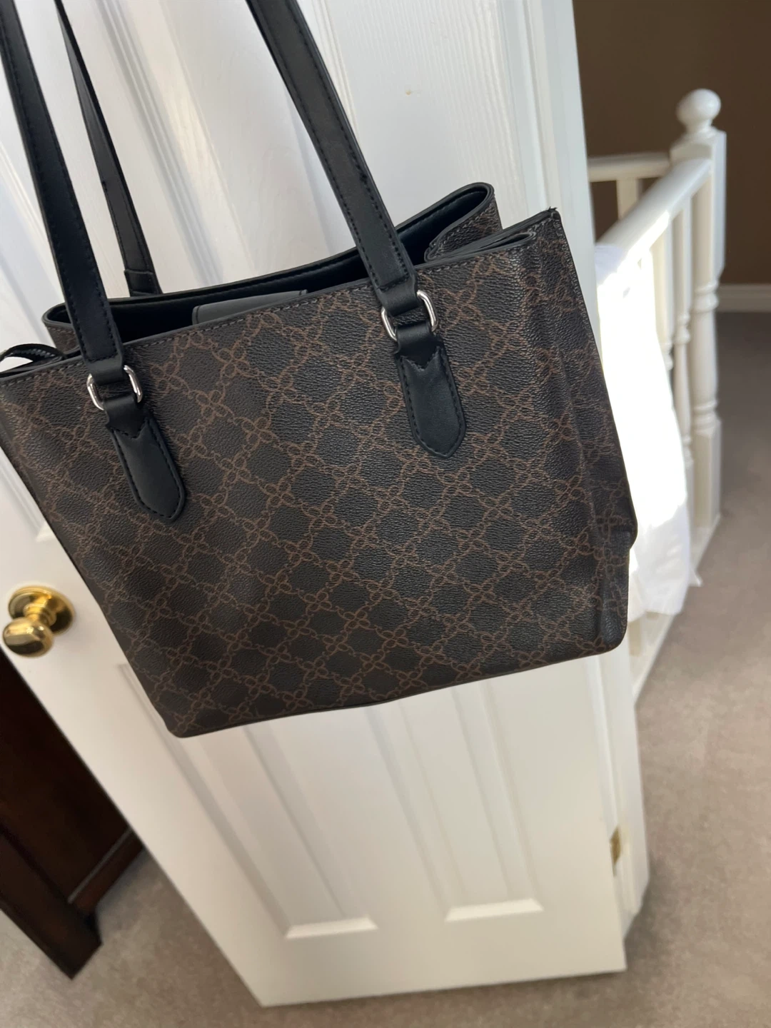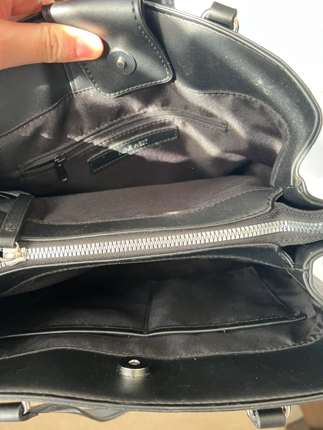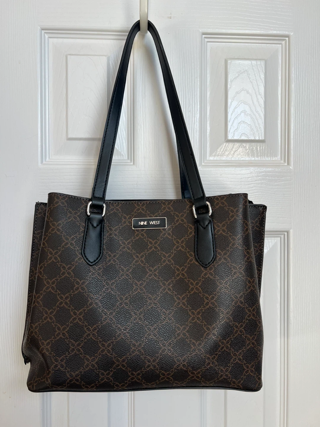 Selling a Nine West tote bag in great condition! It's a stylish and practical bag, perfect for everyday use. It has a spacious interior with multiple compartments to keep your belongings organized. The exterior features a classic design with the Nine West logo. Feel free to message me with any questions!