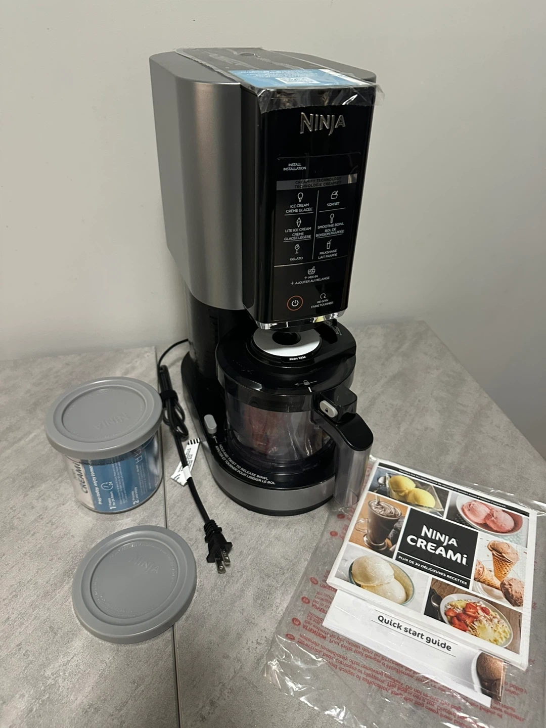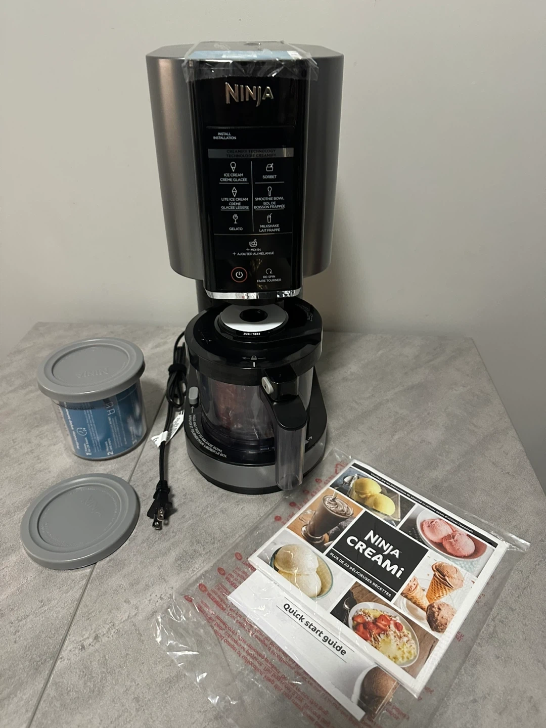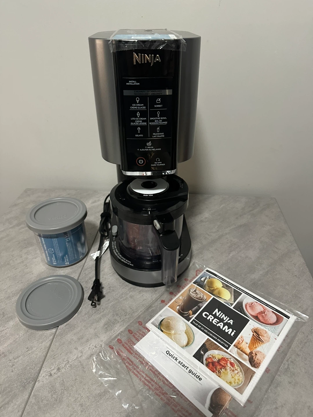 Ninja CREAMi in great condition and comes with all the original accessories, including the box and quick start guide. Never used. Perfect for making ice cream, gelato, sorbet, and more right at home