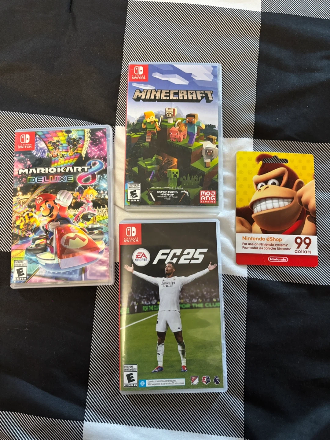 (Mario kart— Sold) Selling a Nintendo eShop giftcard for $99, perfect for downloading new games or DLC! Now includes 8 Deluxe, Minecraft, and FC25 for the Nintendo Switch (all for 140) Individual games: 40 each