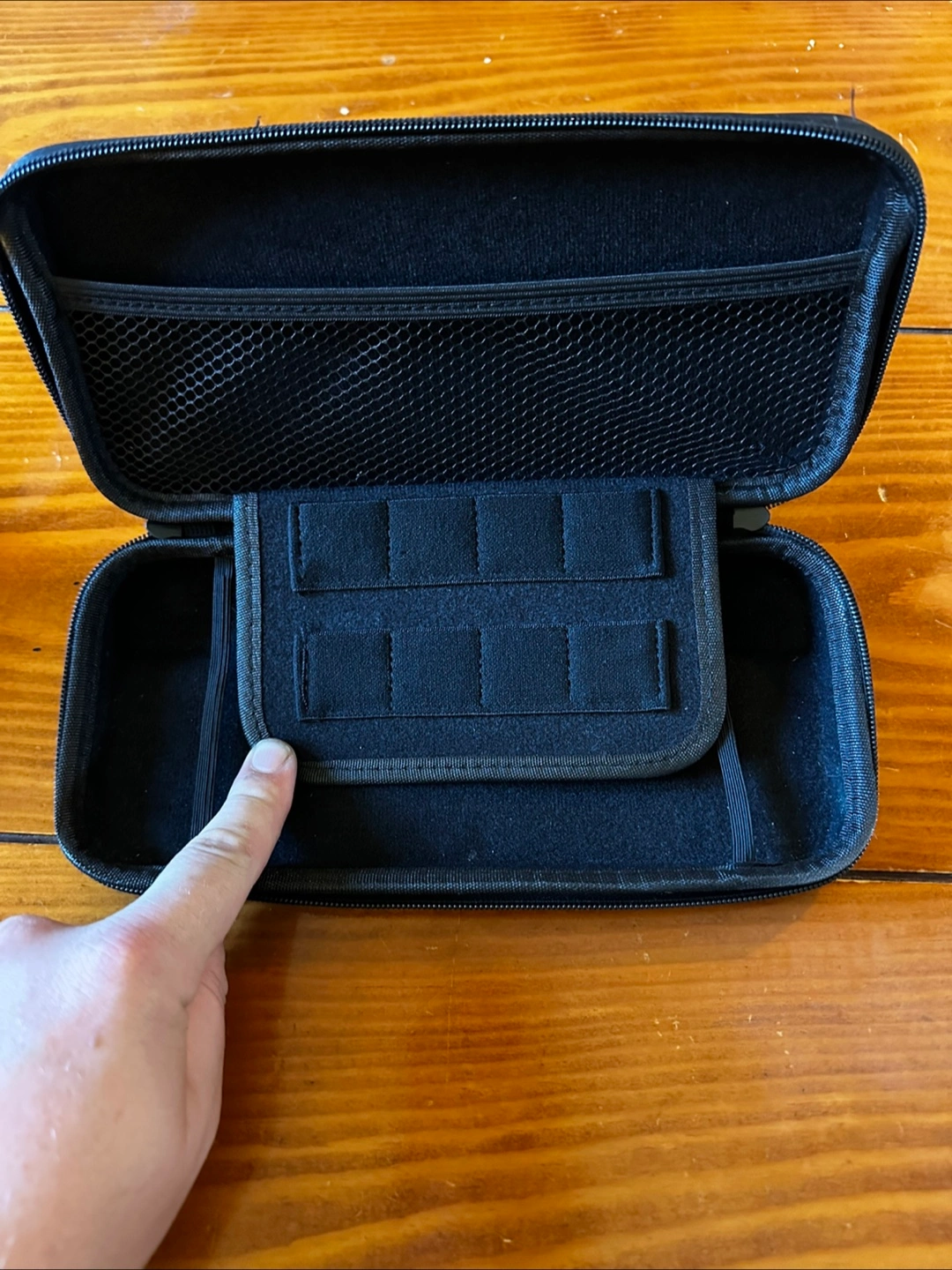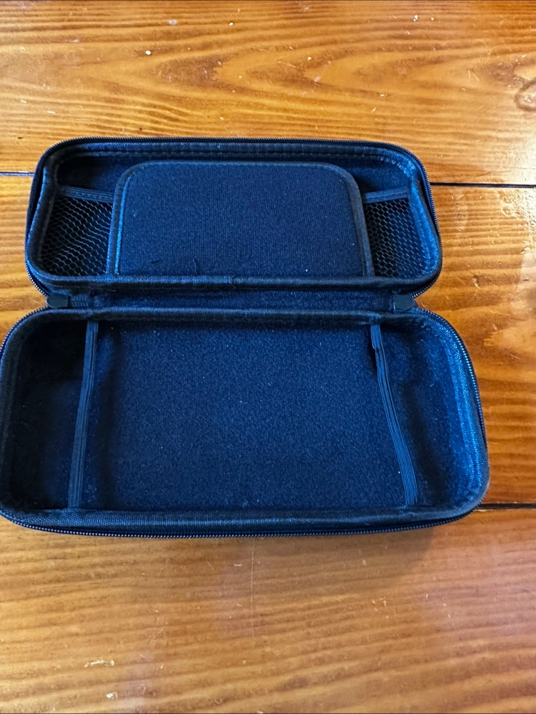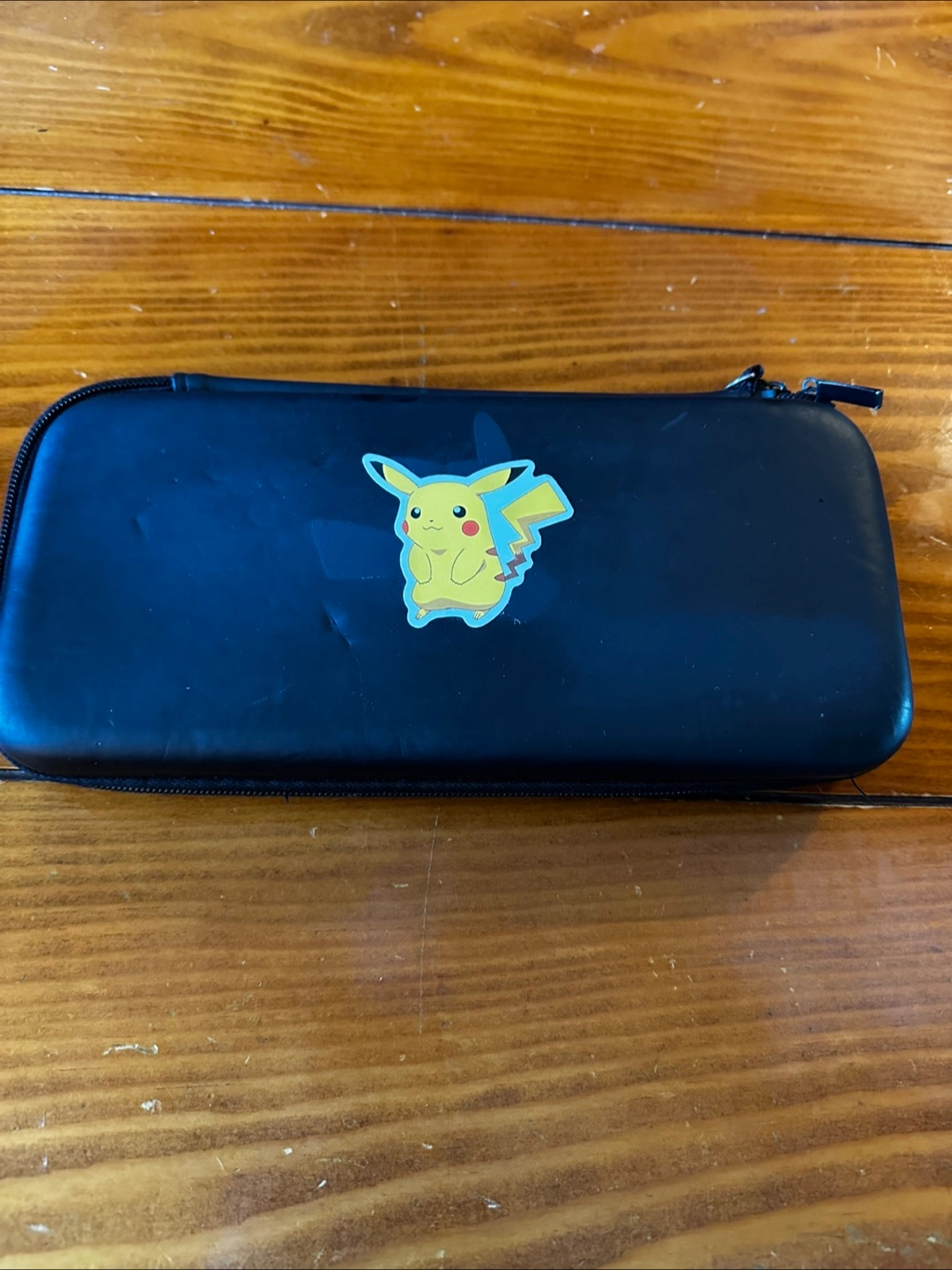 Selling a Nintendo Switch carrying case in great condition! It's black and has a Pikachu sticker on it. It has compartments for game cartridges and accessories, perfect for keeping your Switch safe on the go🥕