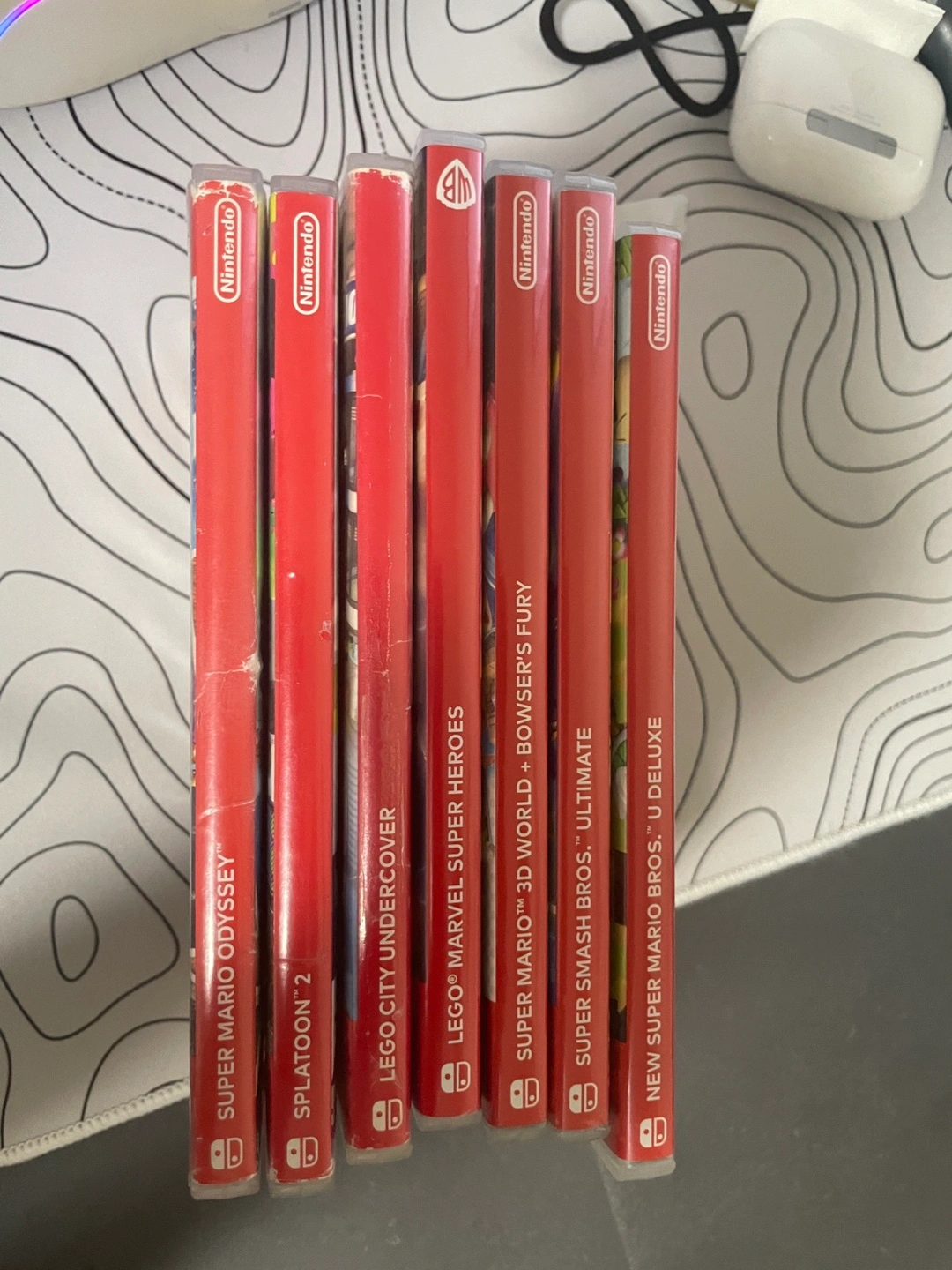 Selling a used Nintendo Switch console. It comes with a few games: - Splatoon 2 - Lego Marvel Super Heroes - Super Mario 3D World + Bowser's Fury - New Super Mario Bros. U Deluxe It has some stickers on the back. Basically Brand New, can offer more money for more games have a lot of options.