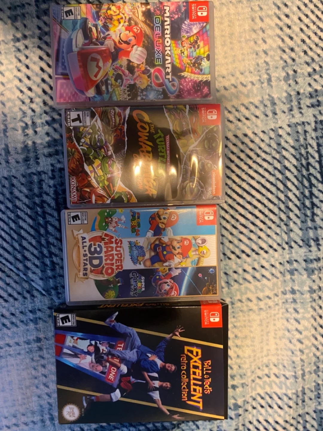Selling a few Nintendo Switch games. All in great condition - Mario Kart 8 Deluxe - Teenage Mutant Ninja Turtles: The Cowabunga Collection - Super Mario 3D All-Stars - Bill & Ted's Excellent Retro Collection