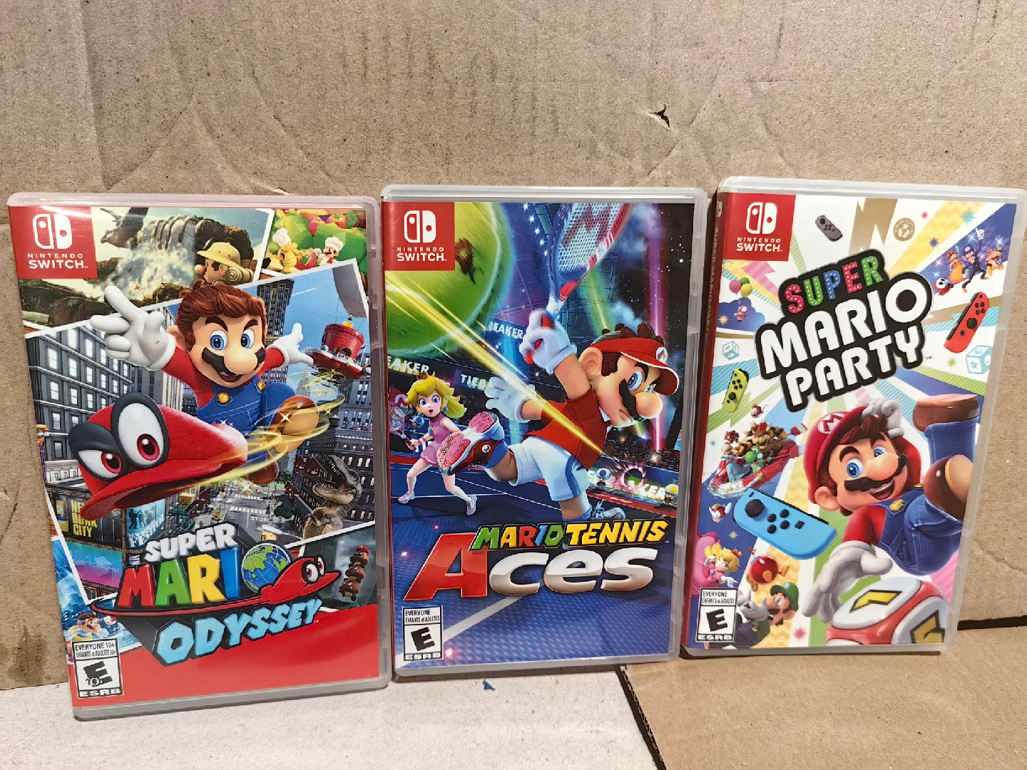 Selling Nintendo Switch games! - super mario odyssey x $50 - mario tennies aces x$ 50 - super mario party x$ 50 -Mario kart 8 (no case) x $50 - Cooking Mama: Cookstar x$50 - muster humter rise(no case) x $40 - de Blob x $30 - LOL Surprise Remix: We Rule the World x$20 -Mario rabbies kingdom battle x $20 Perfect for some family fun or to add to your collection!
