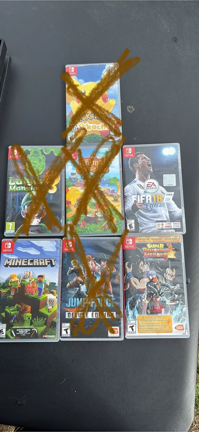 Selling a few Nintendo Switch games! Available are: - FIFA 18 - Minecraft - Super Dragon Ball Heroes World Mission (some cards included)