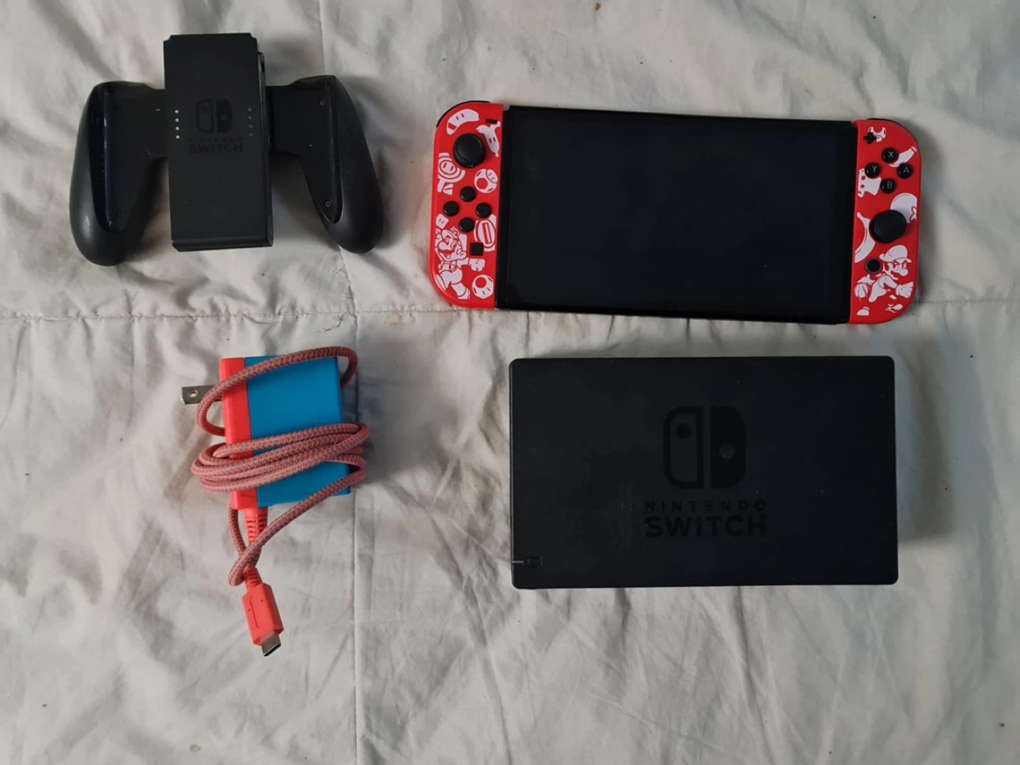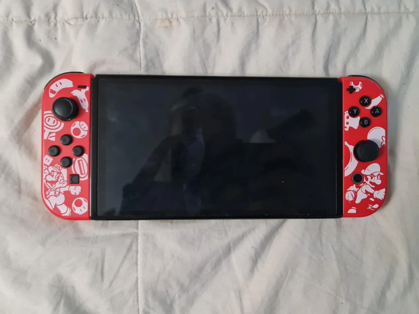 Selling a Nintendo Switch with a Mario-themed design! It comes with the dock and charger, so you'll have everything you need to get gaming right away