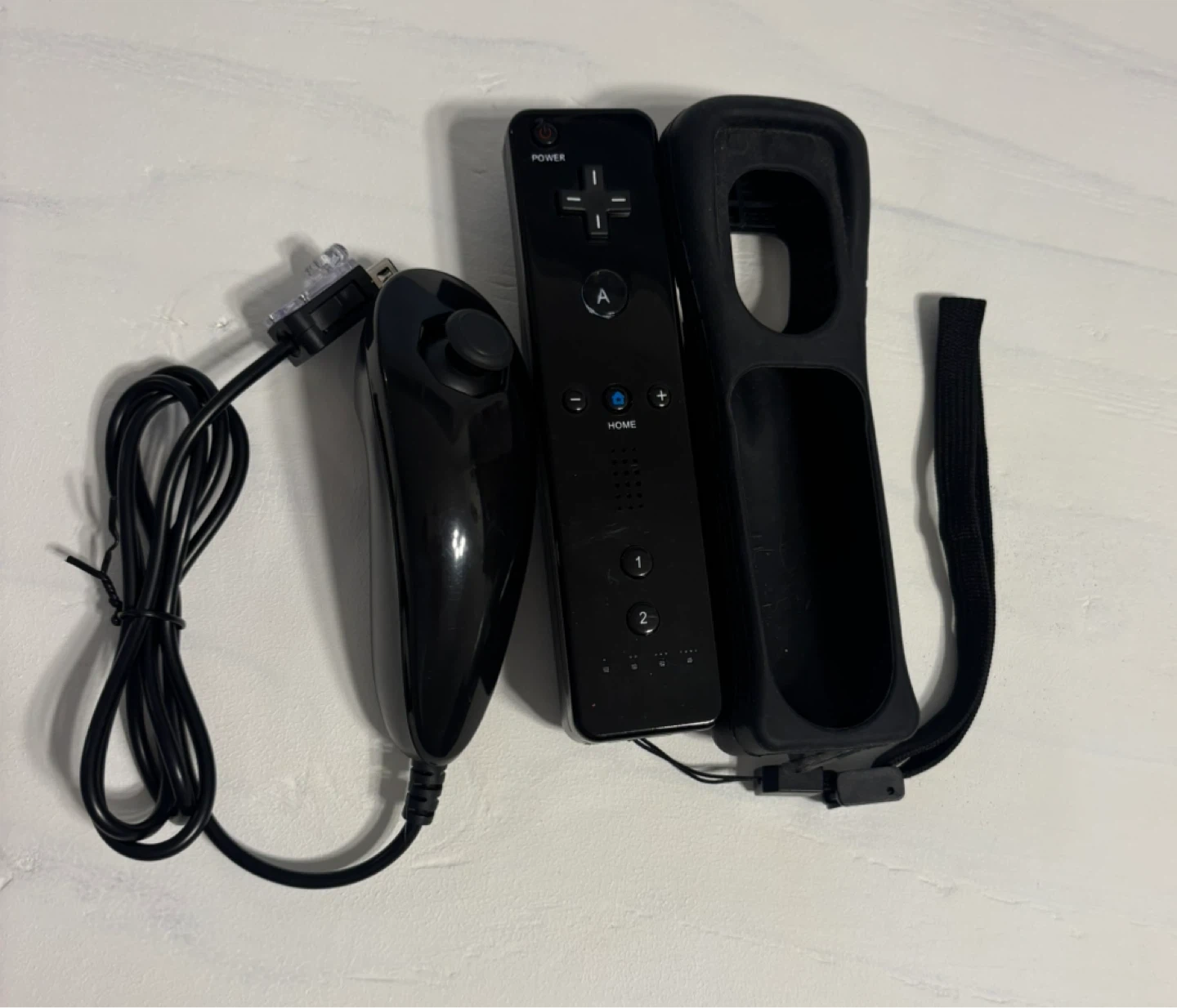 Selling a black Nintendo Wii Remote and Nunchuck. Perfect for reliving those classic Wii games! Comes as seen in the picture. Features & details 1 x Original Nintendo Wii Remote Plus and 1 x Original Nintendo Wii Nunchuck Genuine Nintendo The Nunchuck Controller Contains the Same Motion-Sensing Technology Enabled in the Wii Remote Controller but also Includes an Analog Stick to Assist in Character Movement Remote can be a Sword for 1 Game, a Steering Wheel for Racing, a Paintbrush, Golf Club, Airplane and More. Features expansion port for additional input devices, such as the Nunchuk controller