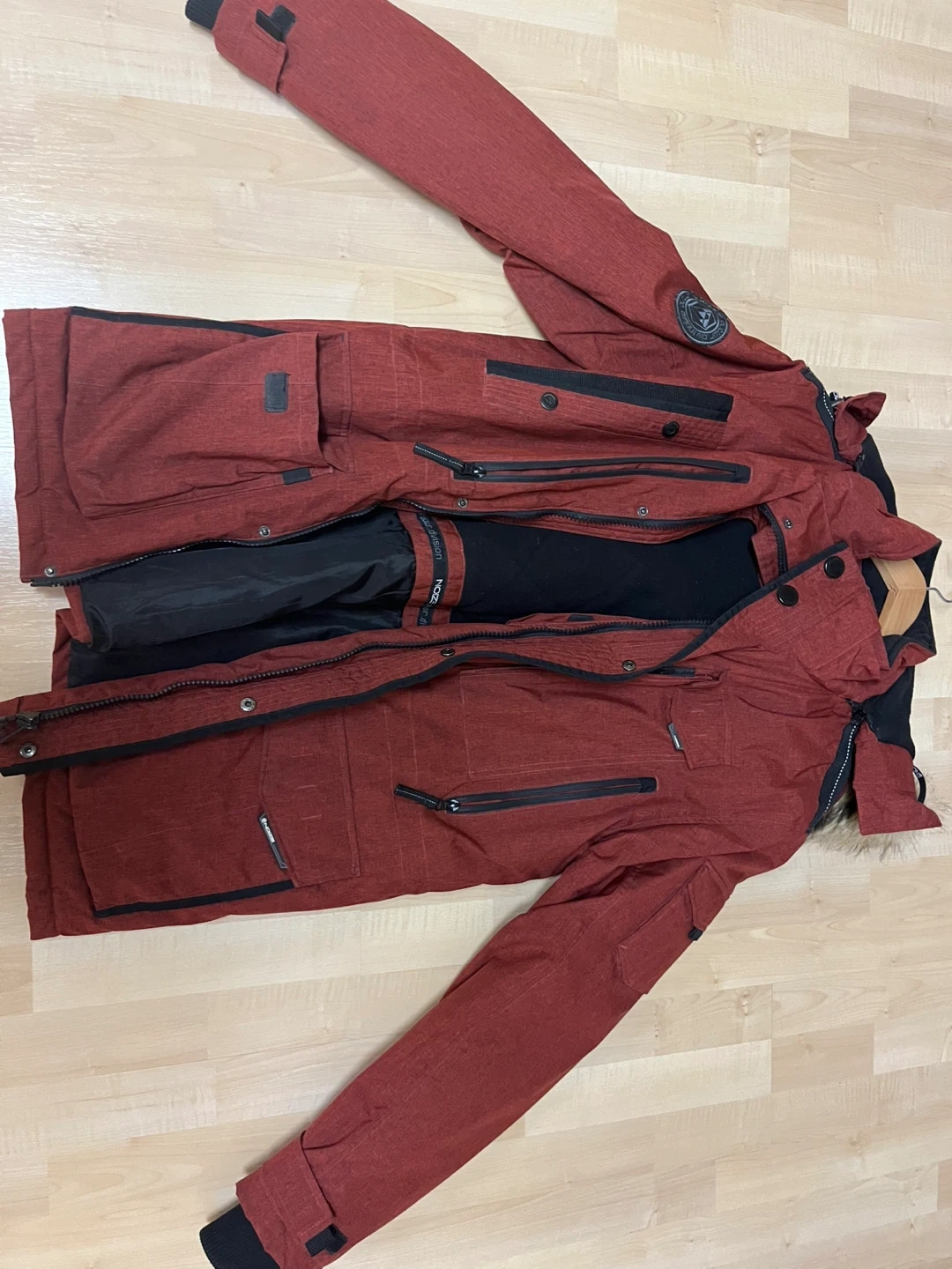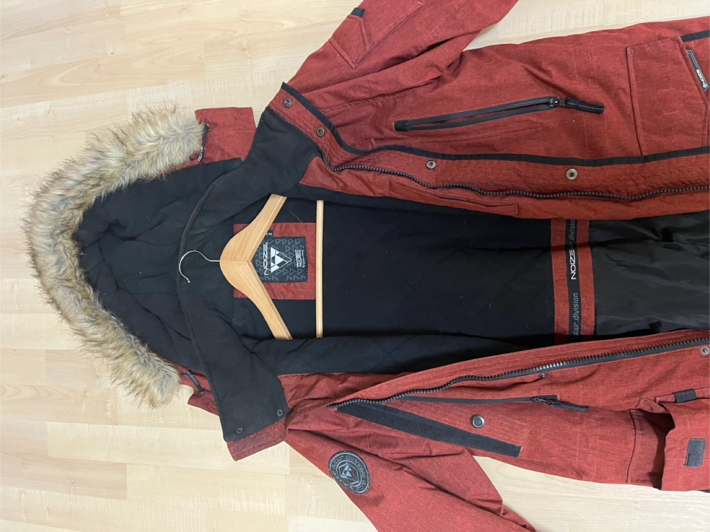 Selling a red Noize winter jacket. It's in great condition and ready to keep you warm this winter! The jacket features a fur-lined hood and plenty of pockets for all your essentials