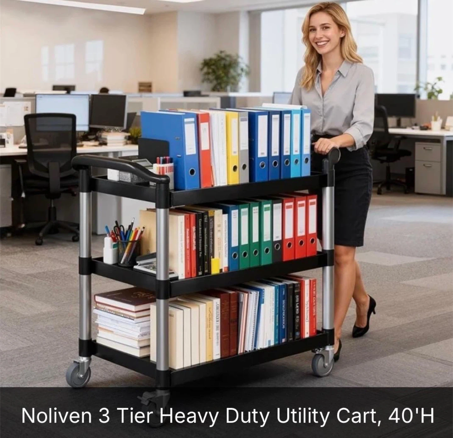 Check out this Noliven 3 Tier Heavy Duty Utility Cart! It's perfect for organizing your office, kitchen, or any space where you need a little extra storage and mobility. The cart is 40 inches high and made to be durable and long-lasting