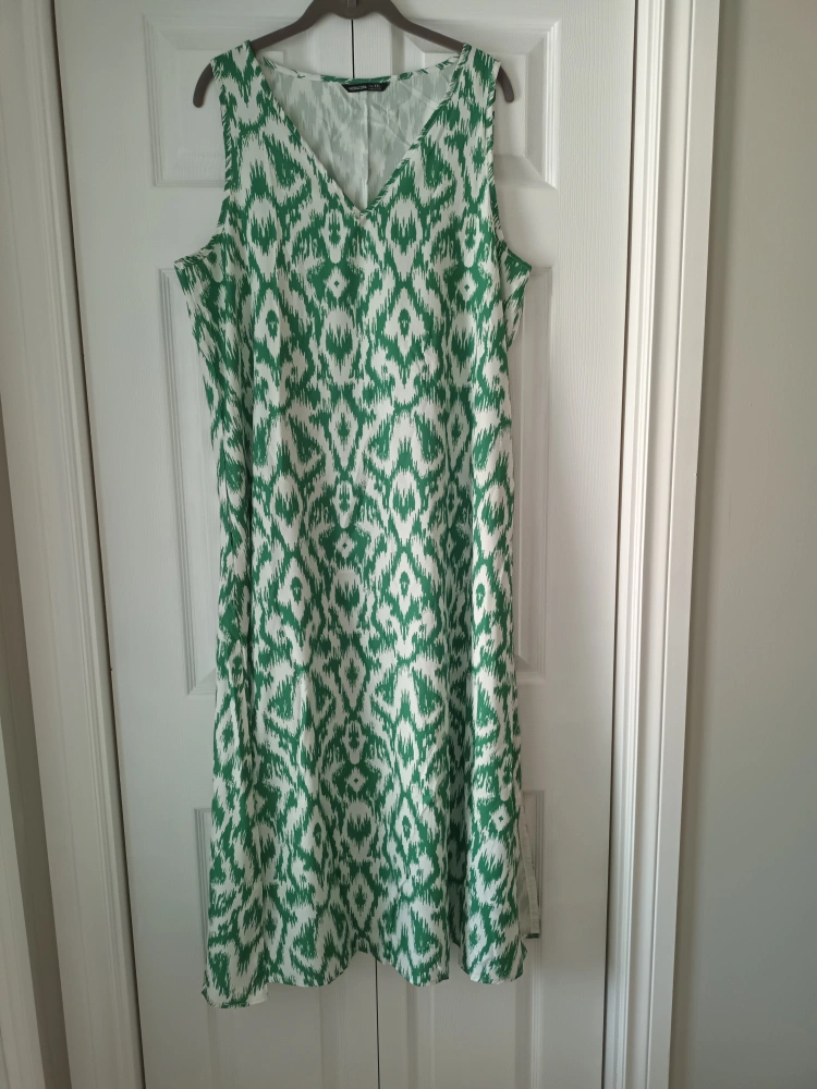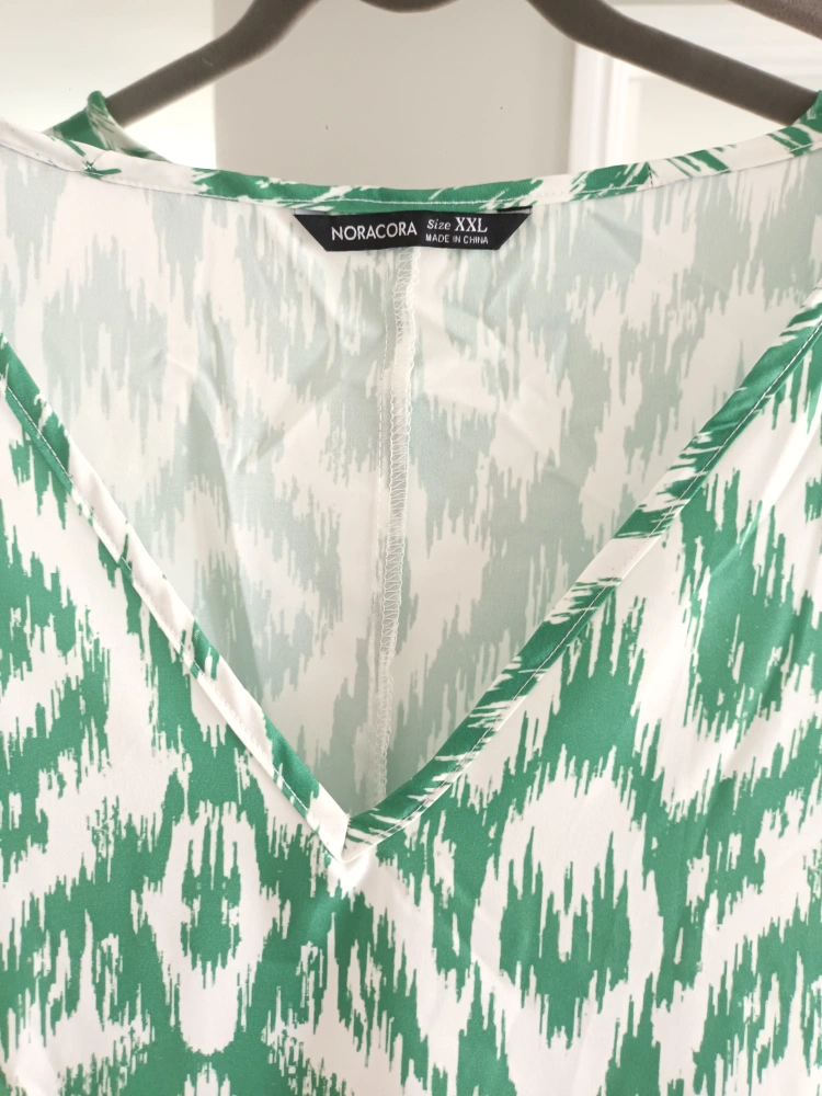 Selling a Noracora dress from Shein. Maxi dress, V neck vibrant green and white pattern! It's a size XXL. The dress is in great condition and ready for a new home