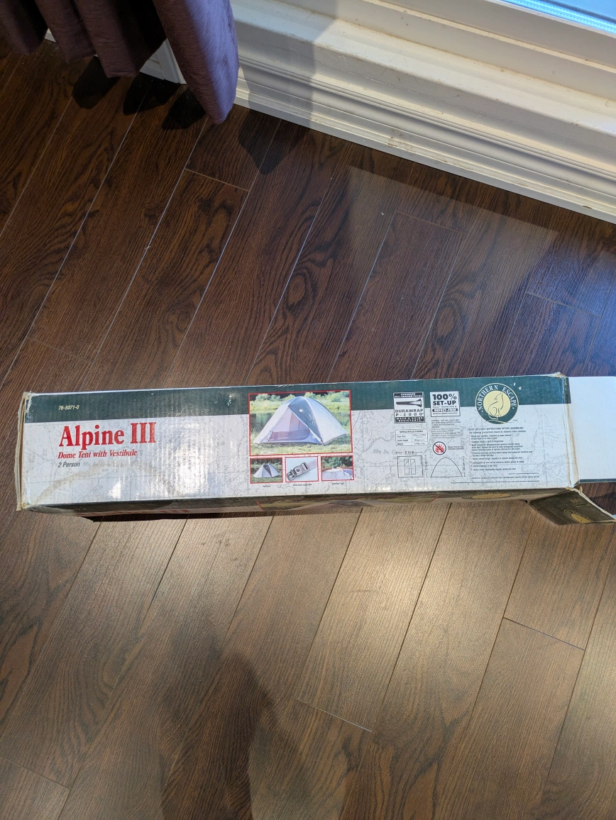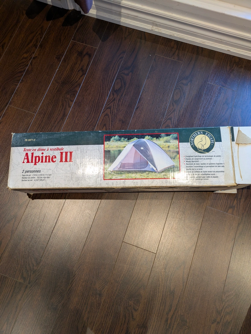 Selling a Northern Escape Alpine III dome tent that sleeps 2 people! It has a vestibule for extra storage. Comes with the original box and all components Available for pick up in front of food basics (intersection of Major Mackenzie and Bayview)