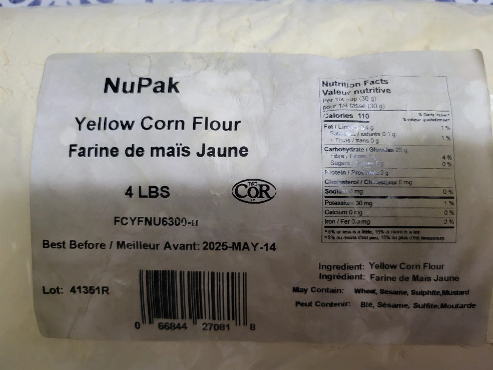 Selling a bag of NuPak Yellow Corn Flour. It's a 4 LBS bag and is untouched.