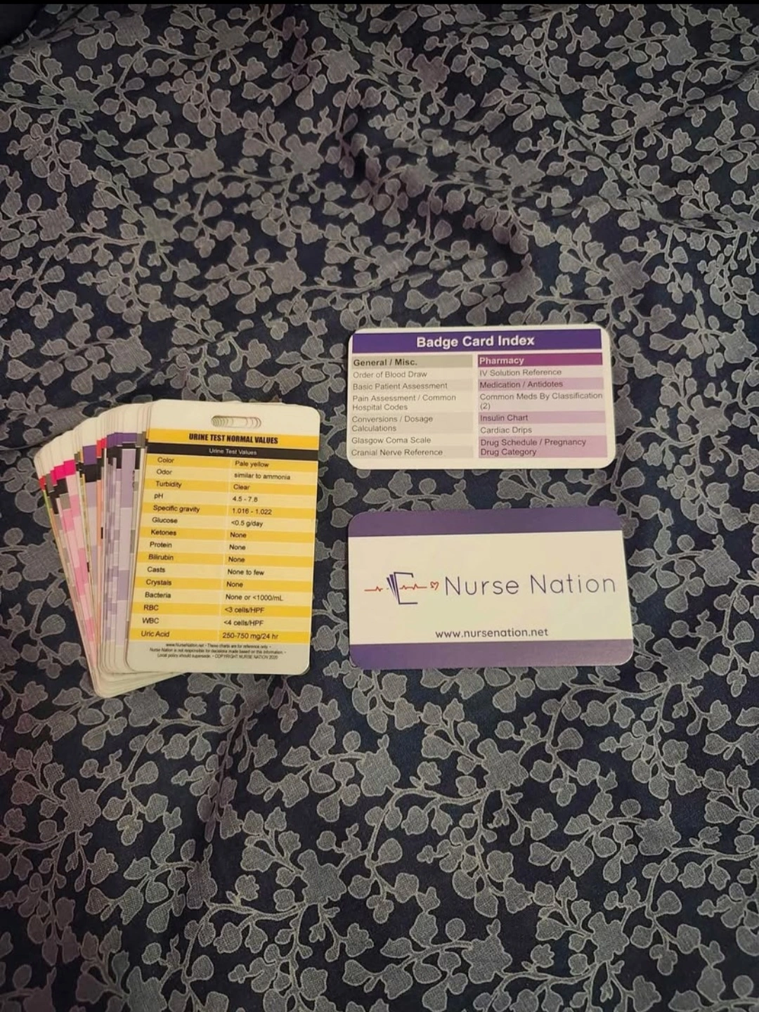 30 reference cards for nurses. Easy-to-read, durable, and lightweight. Covers general, meds, and pharmacy topics.