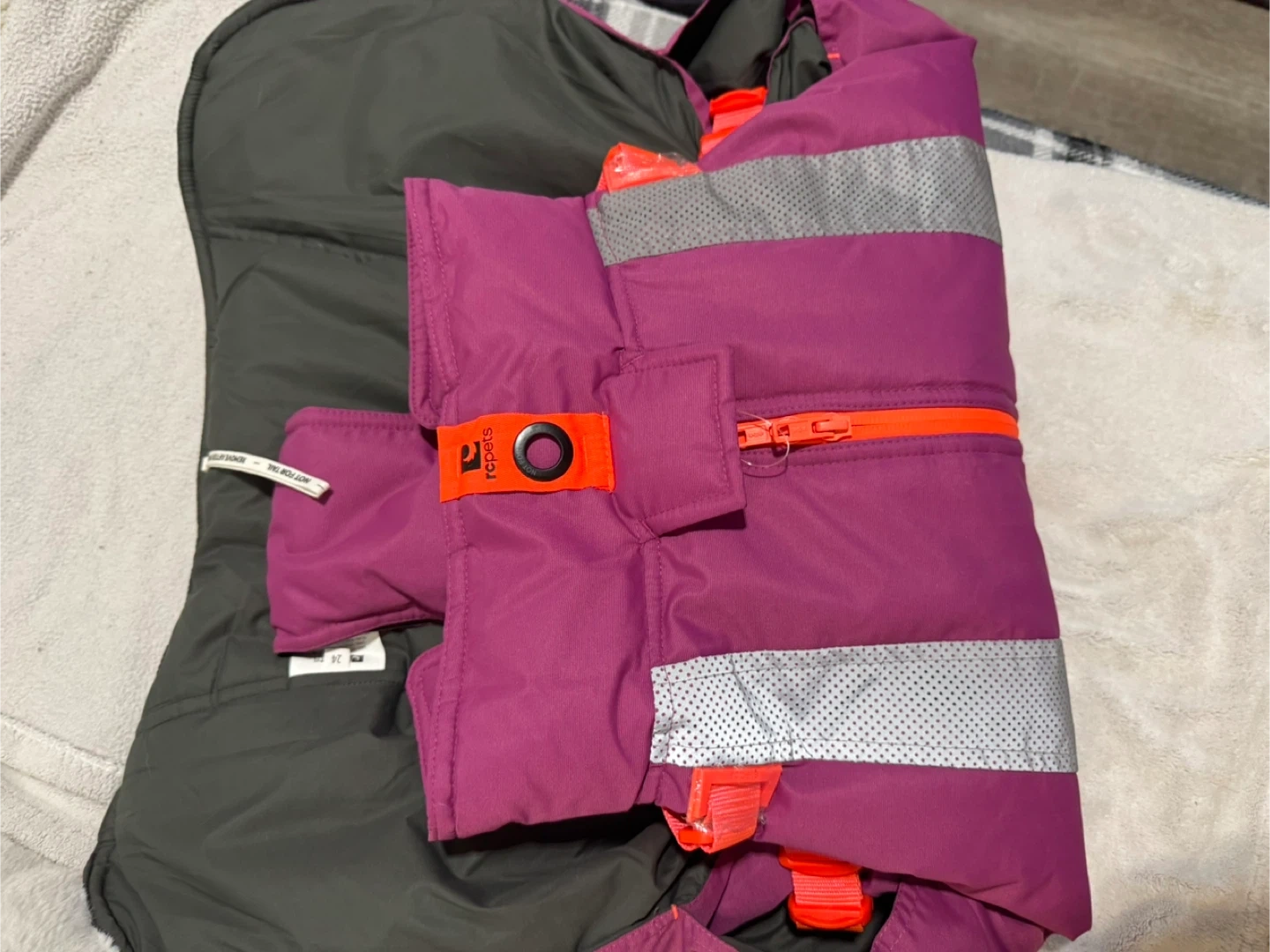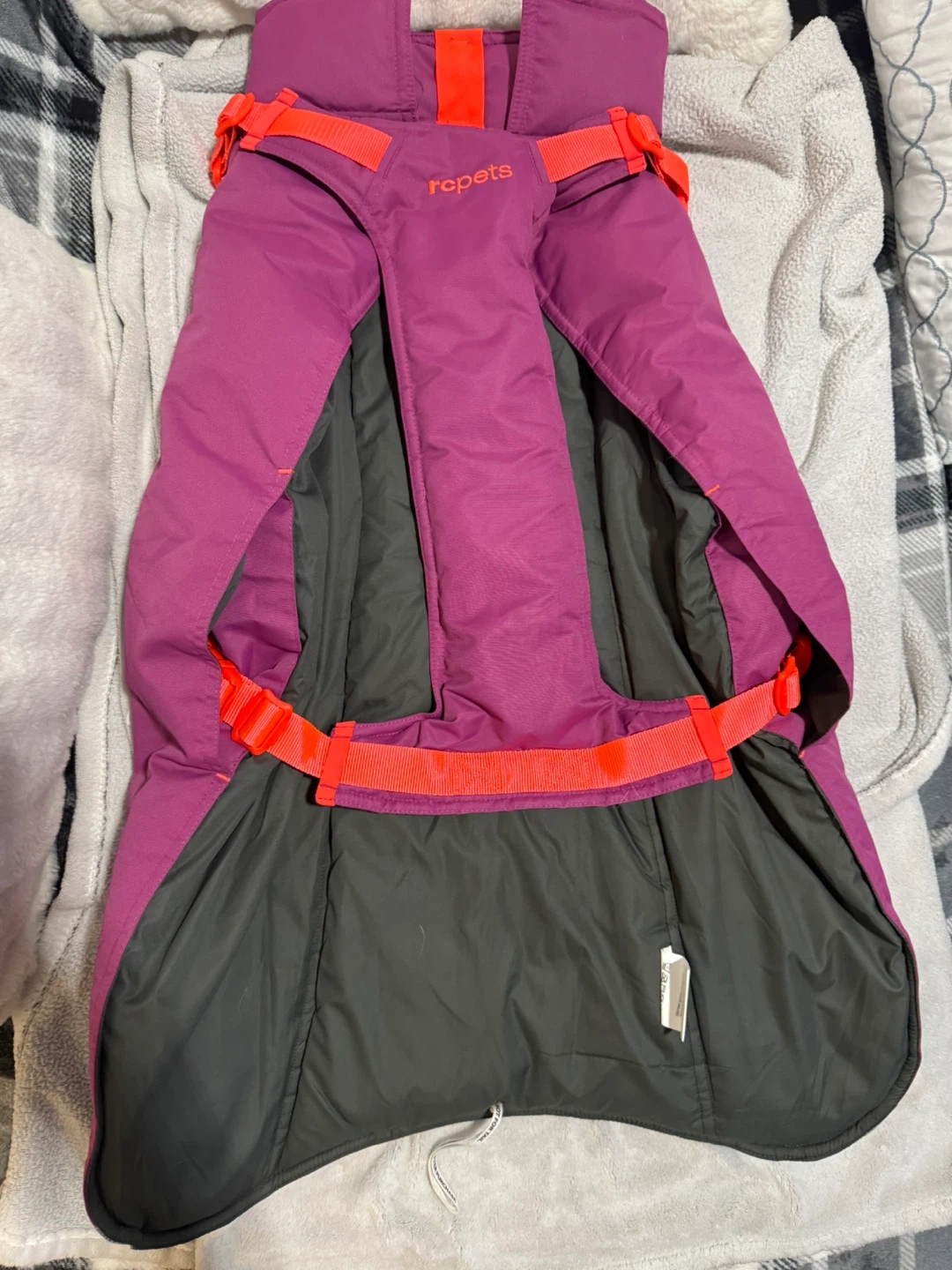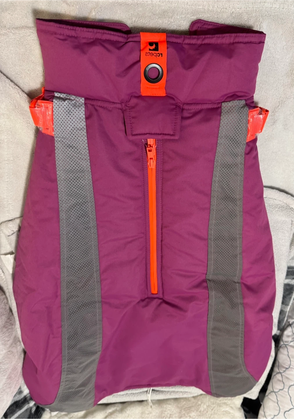 Waterproof and reflective Really nice dog coat. 24 inches A bit too small for my guy Would fit medium size dog up to 60lbs $50 obo