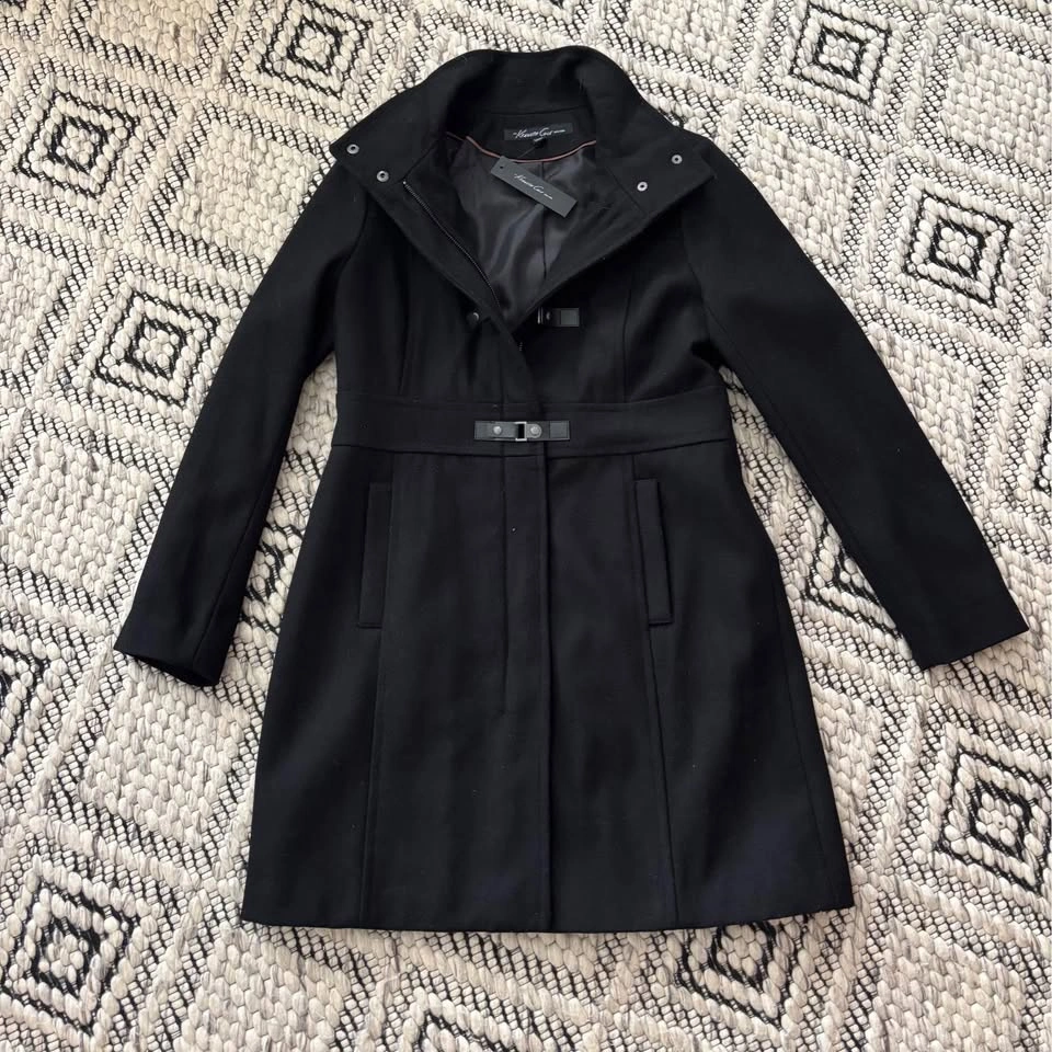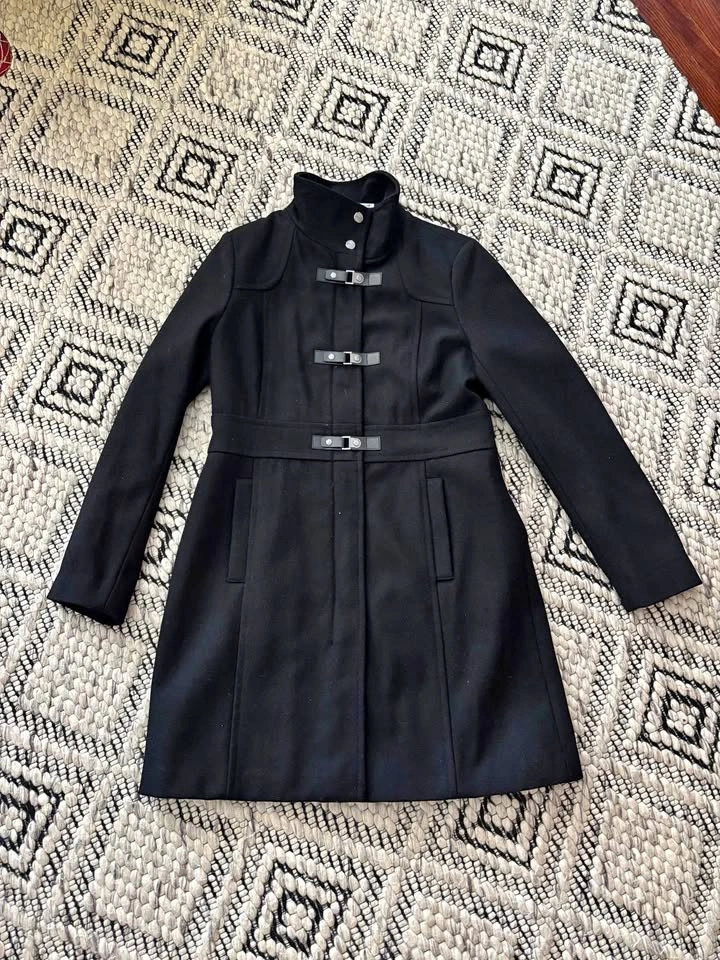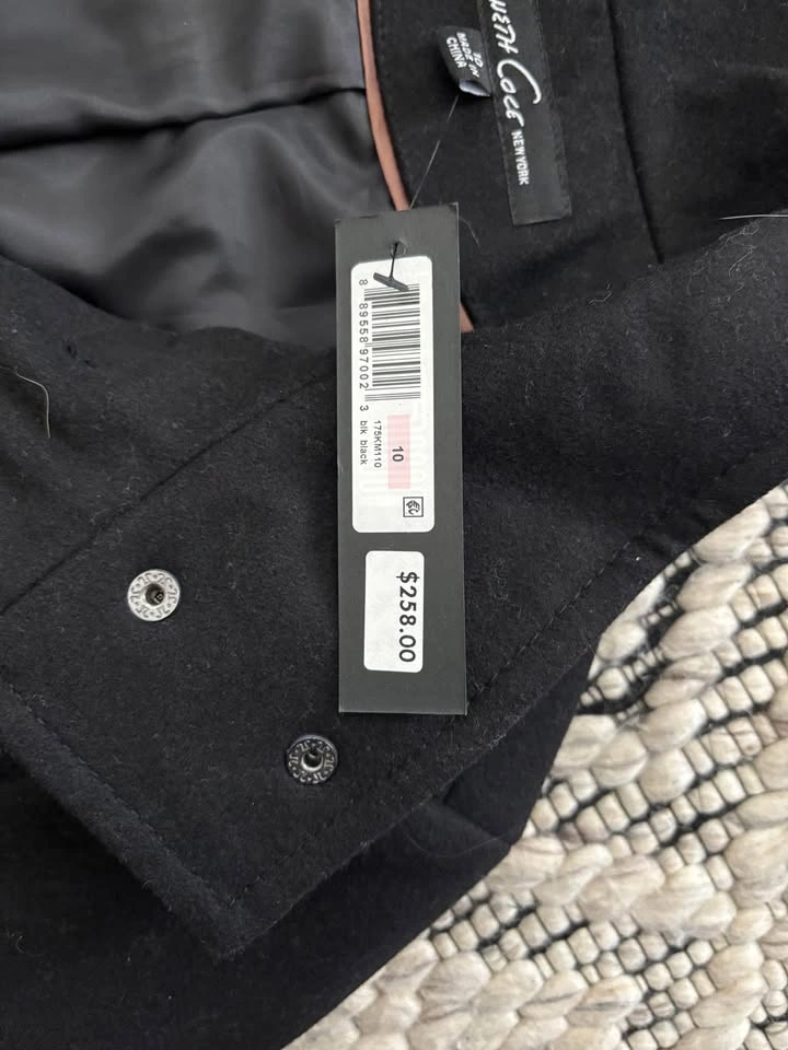 NWT Beautiful Kenneth Cole black wool blend coat Lined Zipper and buckle closures With functioning pockets Size 10 20" pit to pit 34.5" length from shoulder 17" shoulder to shoulder From a pet and smoke free home Pick up in Etobicoke or near Union Station