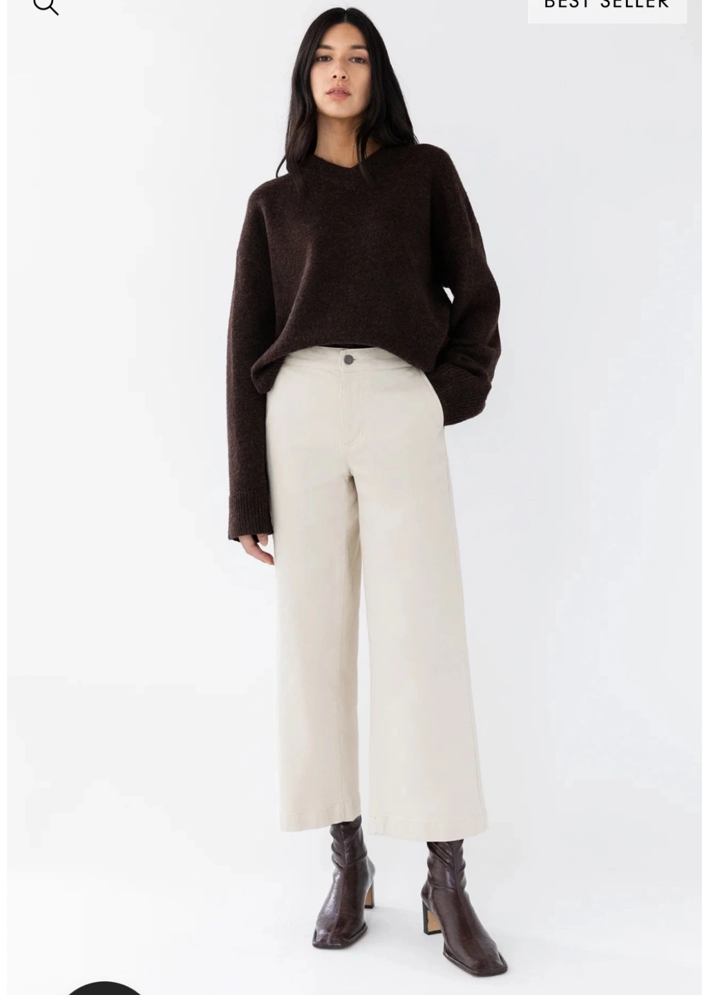 Likely new! Original price is $78 These cropped, twill wide leg pants are made with versatility and comfort in mind. Made from a stretchy, slub twill to comfortably hug around the waist and hips and is more relaxed on the legs. It's detailed with a mid-rise waist with an elasticated back and side pockets. DETAILS Elasticated waist at back. Side and back pockets. Multiple colour options. FIT & SIZING Relaxed fit Cropped length: 26" inseam Wide leg cut Mid-rise waist