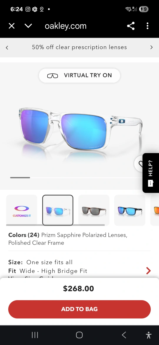 Selling a pair of Oakley Holbrook sunglasses with Prizm Sapphire Polarized lenses and a polished clear frame! These sunglasses are in great shape and come with a case. The size is one size fits all. These retail for $268! 10/10 condition only asking $100.00