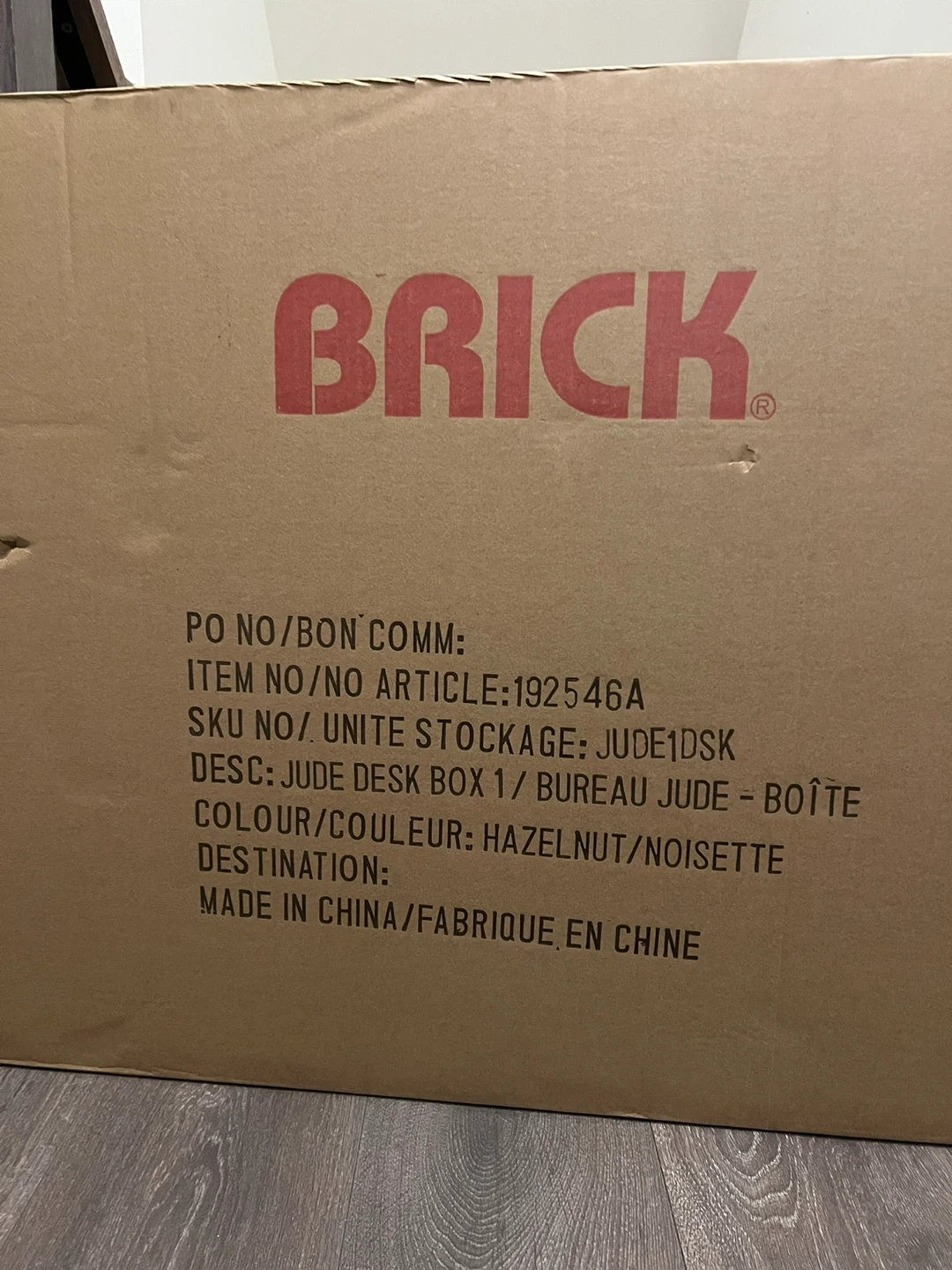 *BRAND NEW* Office Desk Colour: Hazelnut The desk is not assembled and still comes in the original box from The Brick. We do not need it so we didn’t assemble it and hence are selling it. Pick up in Milton. Cash only! No bargaining please as the item is brand new.