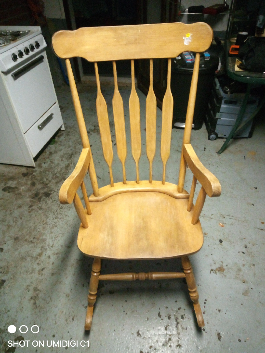 Selling a classic wooden rocking chair. It's in great condition and ready to add a touch of charm to your home. The chair has a lovely light wood finish and a comfortable design for relaxing.