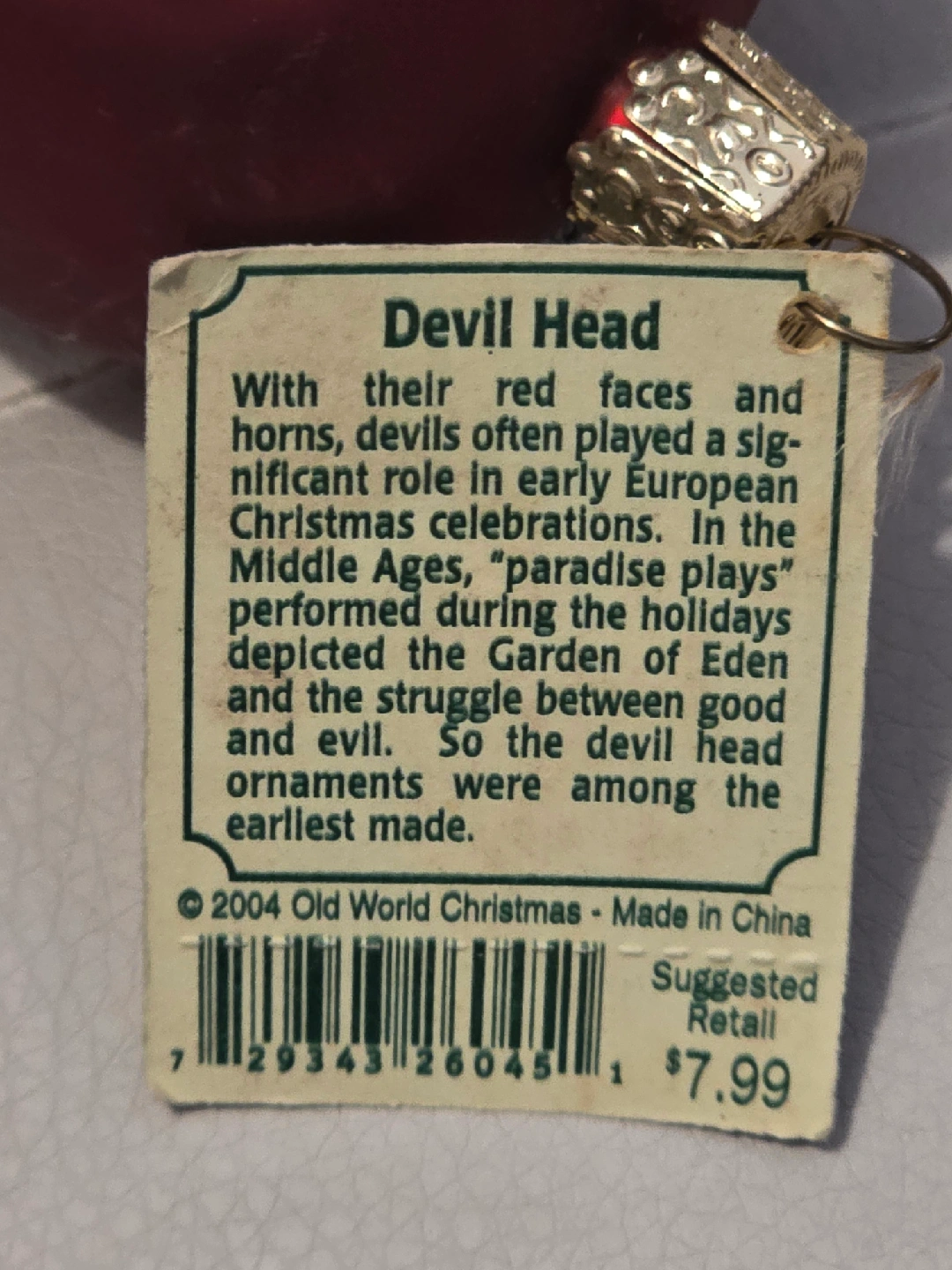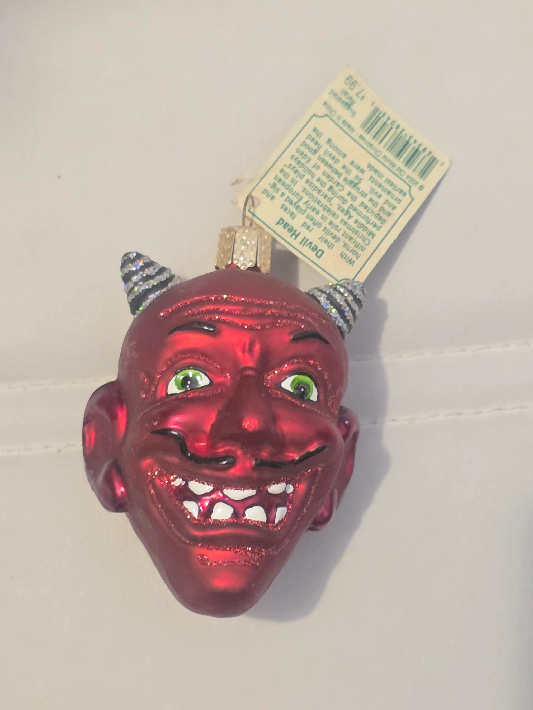 Selling a Devil Head ornament from Old World Christmas! It's a unique piece with a red face, horns, and a lot of character. Rare Find Brand New Pick up at Yonge and Steeles