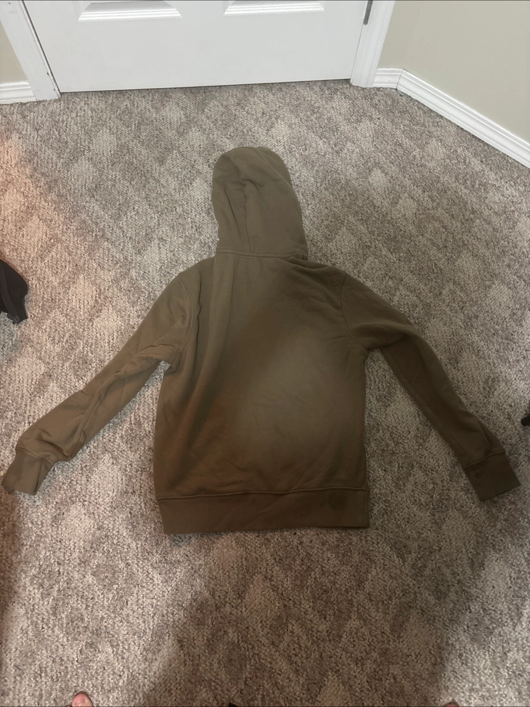 Selling a comfy olive green hoodie! It's in great condition and ready for a new home. Perfect for layering or just lounging around the house. It's a versatile piece that goes with everything