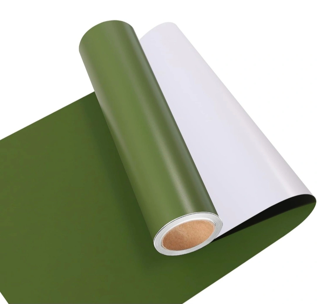 Matte Vinyl - 12"x8ft olive green PERMANENT Adhesive vinyl has a matte finished texture. It's perfect for all sorts of DIY projects and crafts. NOT heat transfer vinyl/NOT HTV/NOT printable vinyl/NOT work with inkjet or laser printers. A test cut is recommended. The permanent adhesive vinyl can stick firmly for cutting machine, craft cutter, sticker, car decal, cup decor, windows. Suitable for most of vinyl cutter.(Note: the product will not stick to cloth)