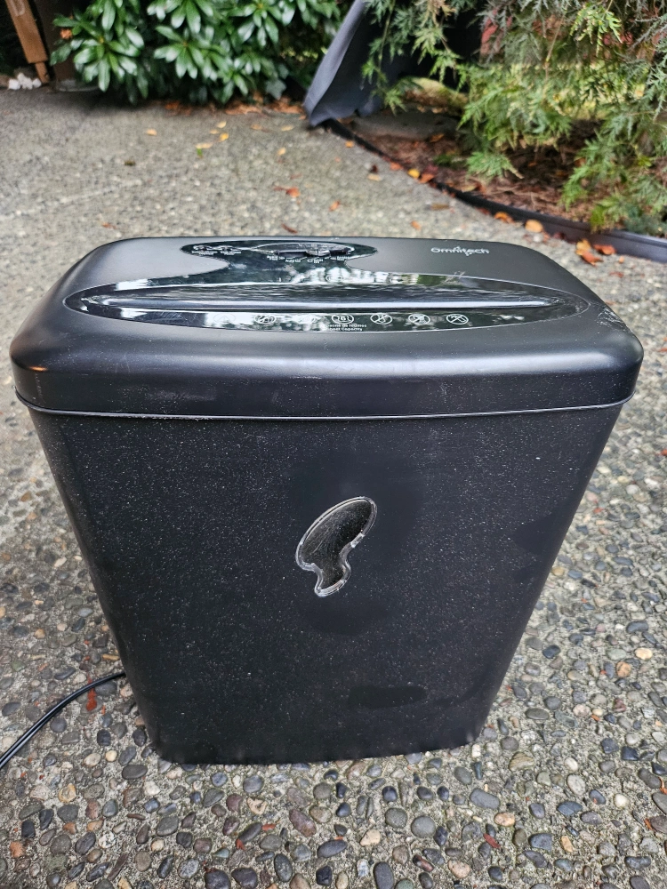 Selling an Omnitech paper shredder, perfect for home or office use! It's in great condition and ready to help you keep your documents secure. Never been used!