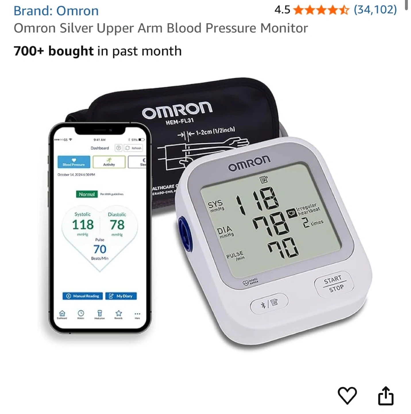Selling an Omron Silver Upper Arm Blood Pressure Monitor! It tracks systolic and diastolic pressure, as well as your pulse. It also detects irregular heartbeats. Pick up at Dt Toronto cash only