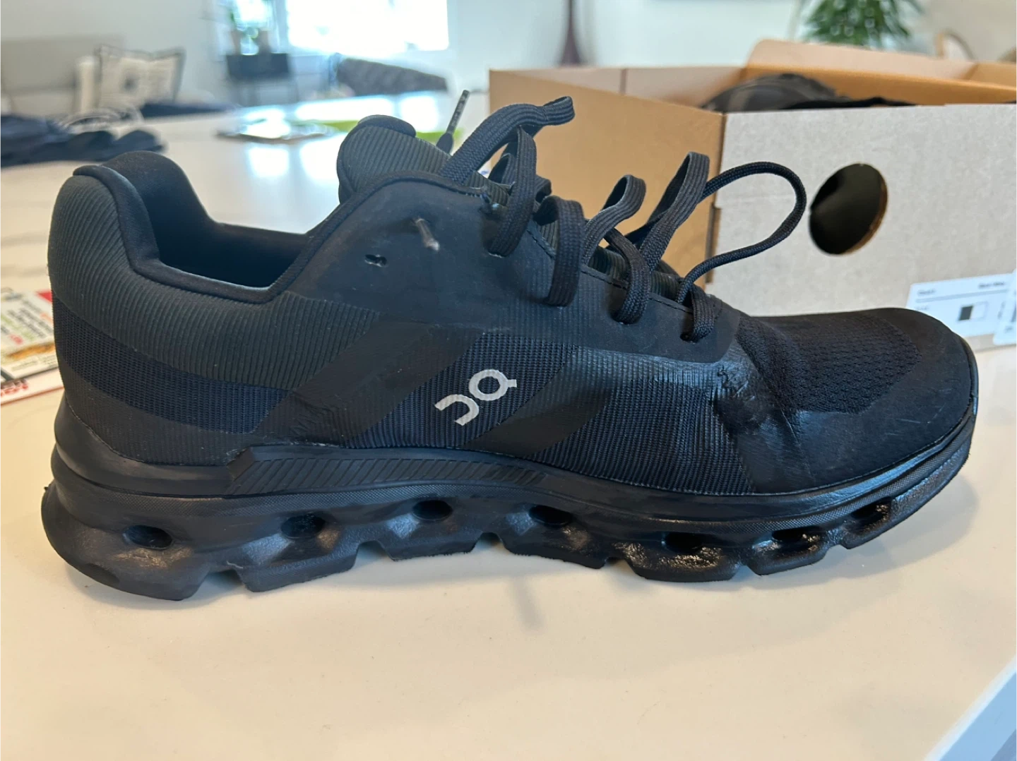 Selling a pair of On Cloud 5 Waterproof running shoes in black. They are a US size 8.5. The original box is included!