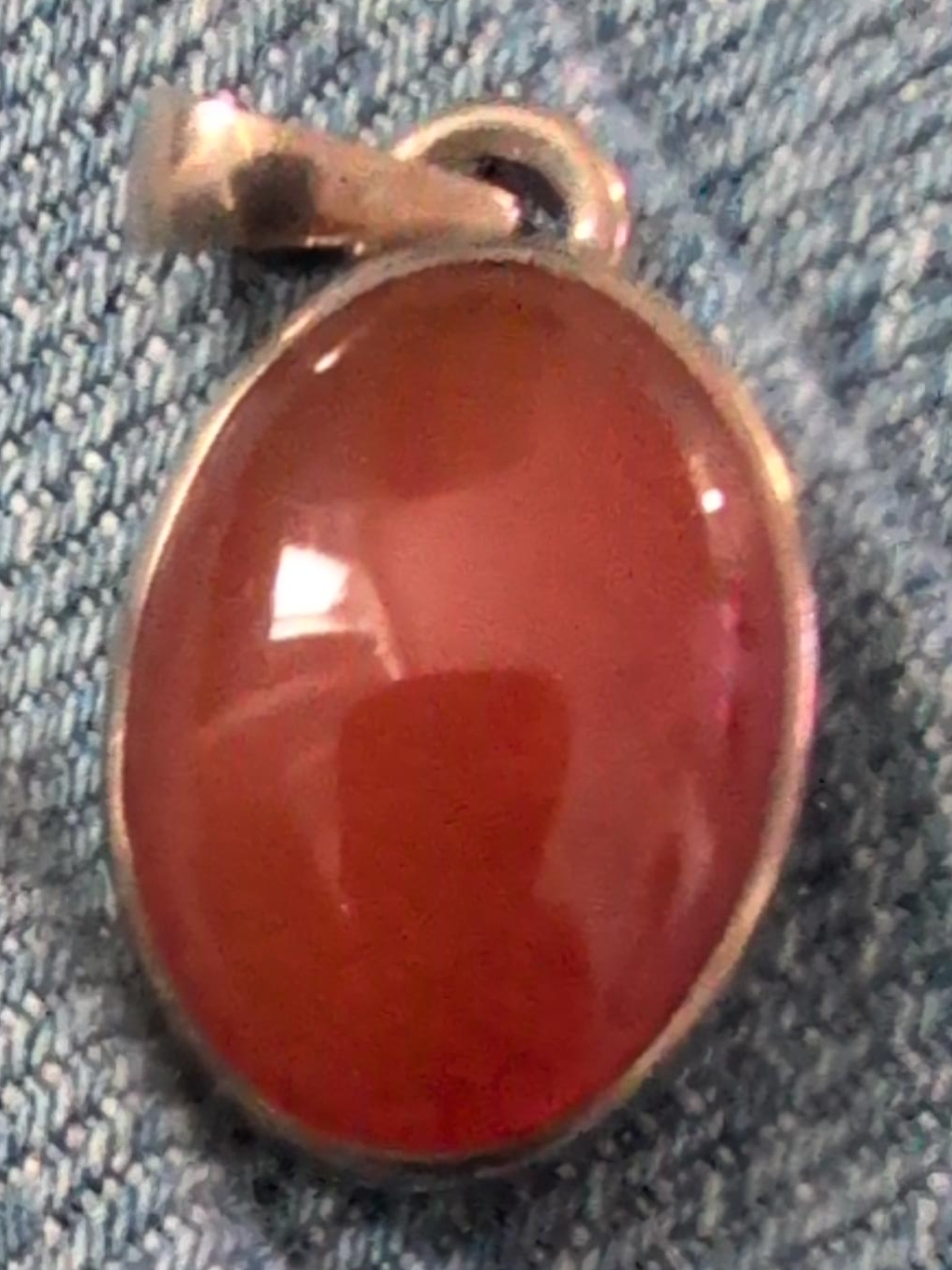 This is a lovely pendant with an orange stone. It is in good condition and ready for a new home!