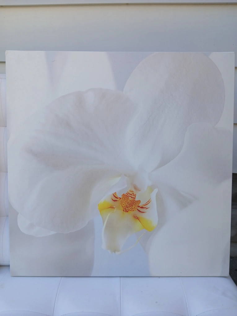 Selling a beautiful canvas print featuring a lovely orchid design! It's perfect for adding a touch of elegance to any room. The print is in great condition and ready to be hung