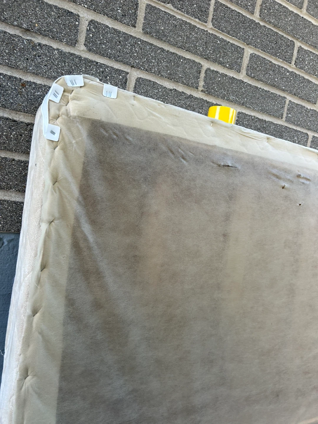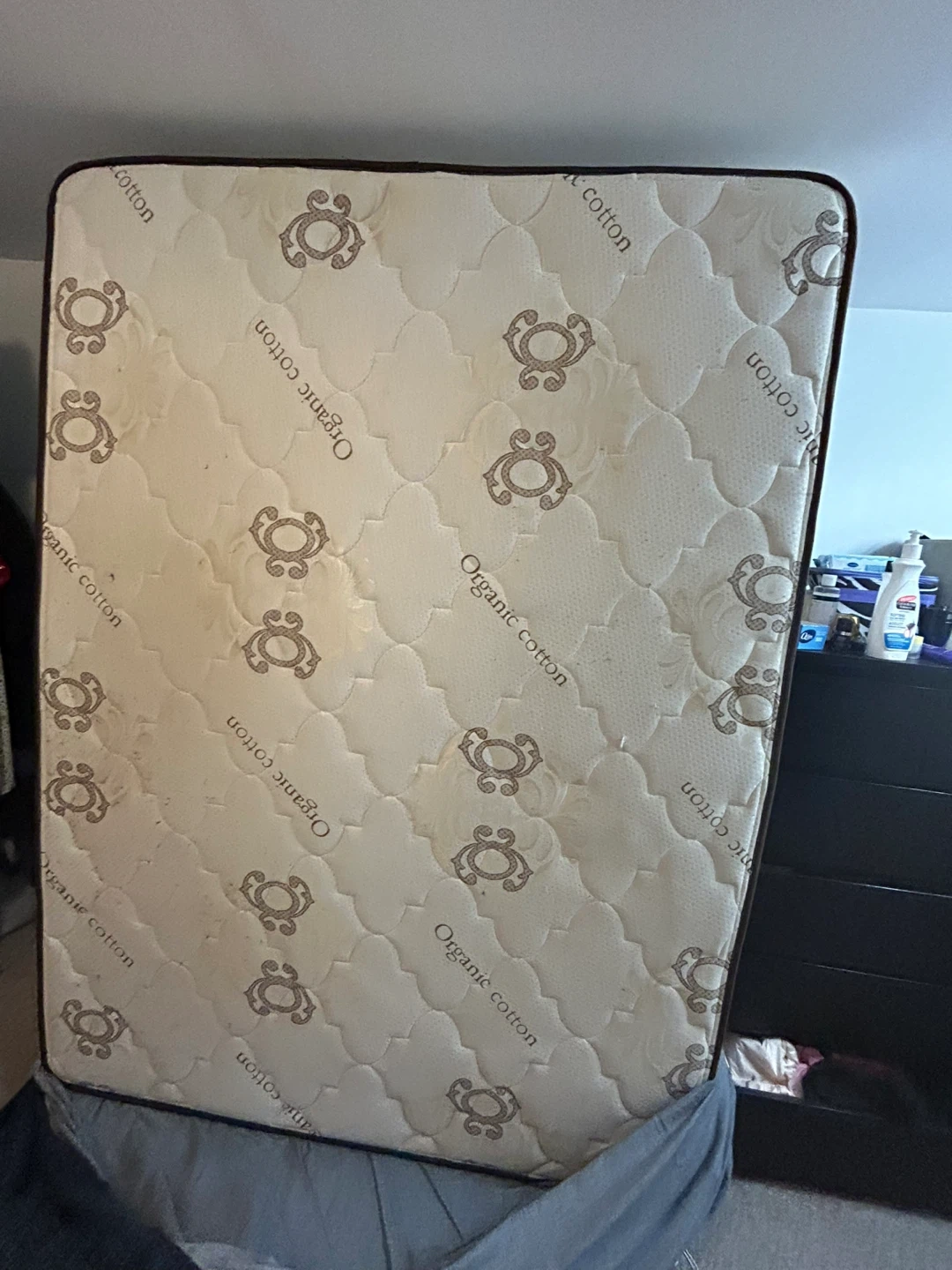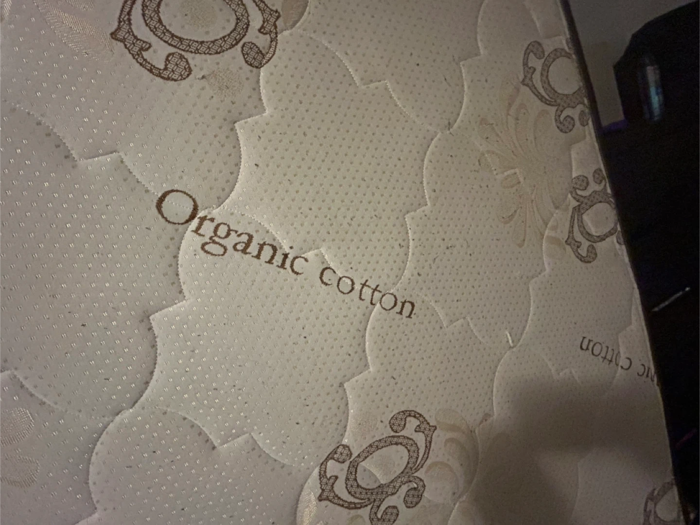 Selling a mattress with an organic cotton cover. It's in good condition and ready for a new home! The mattress features a patterned design.