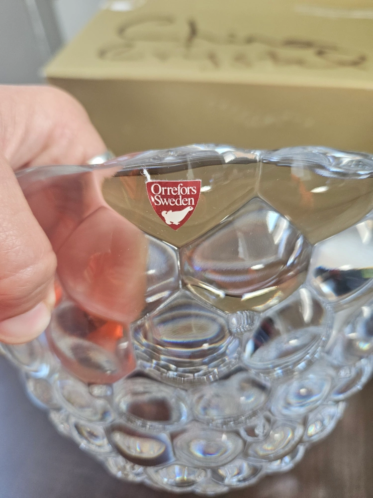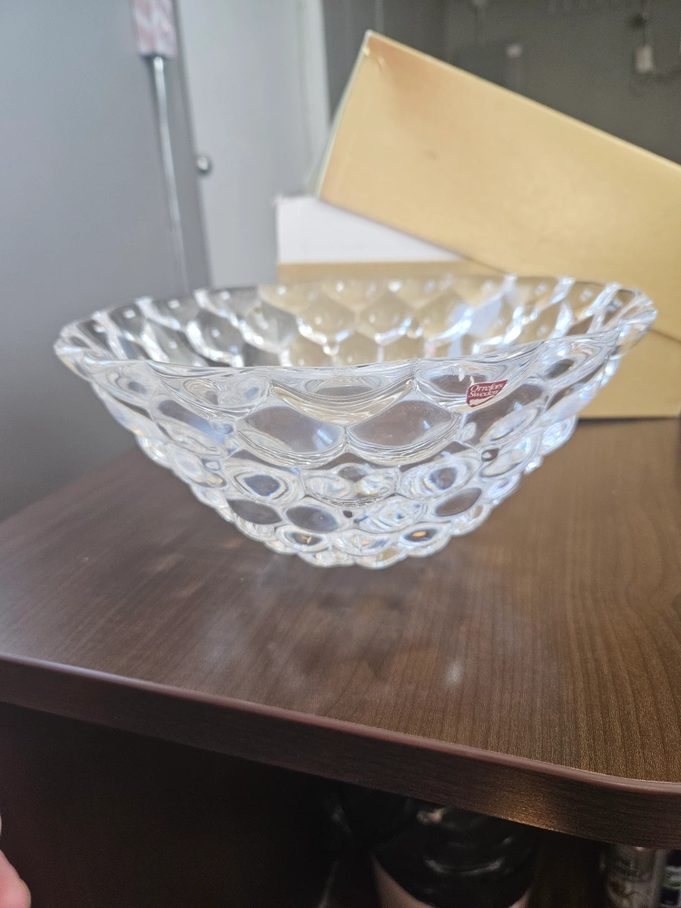 Selling an Orrefors Sweden crystal bowl with a unique bubble design! It's in excellent condition and comes with the original box. This beautiful piece would make a lovely addition to any home